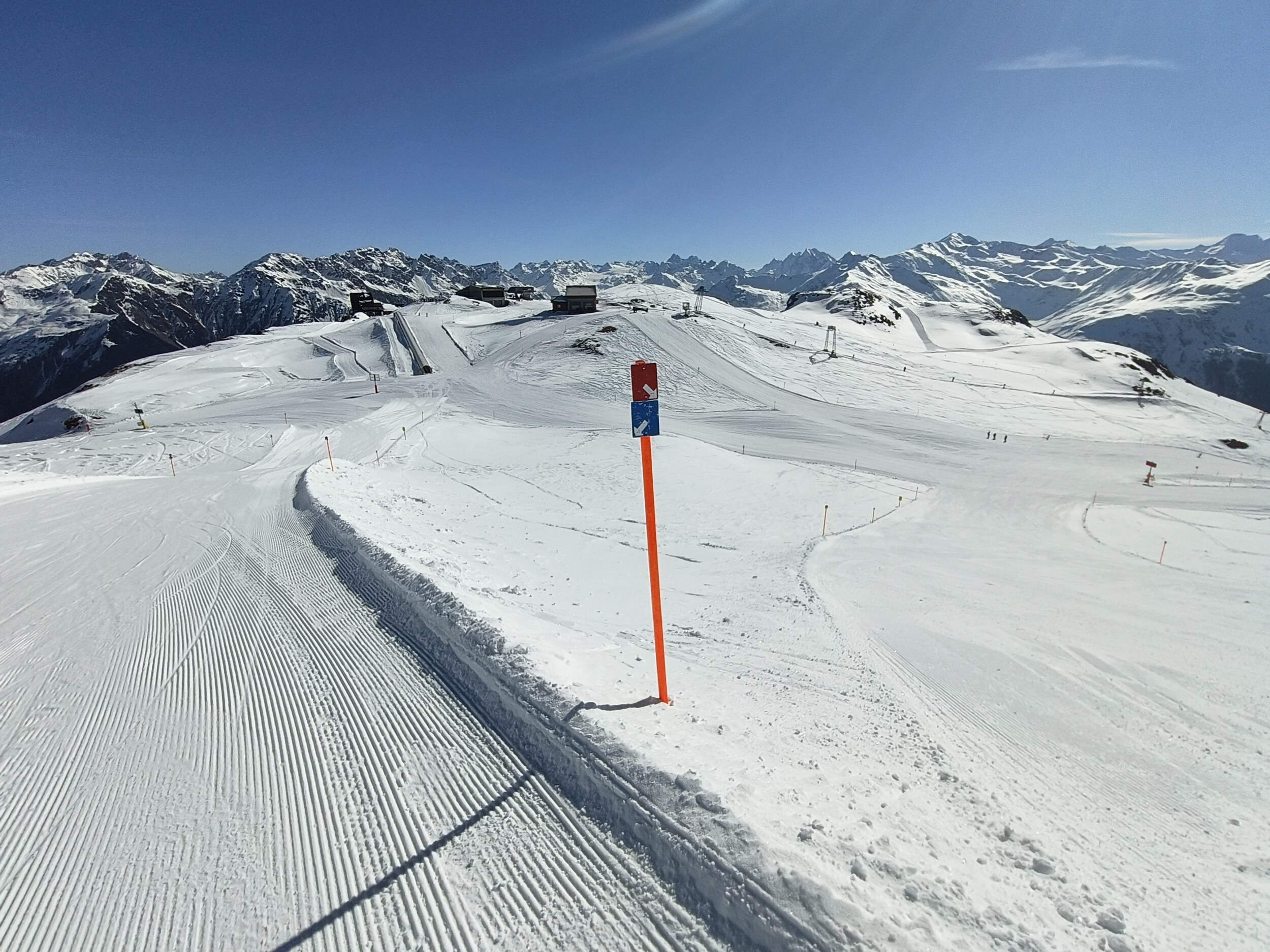 Madrisa ganztags sonnig, aber momentan nur Rumpfbetrieb.