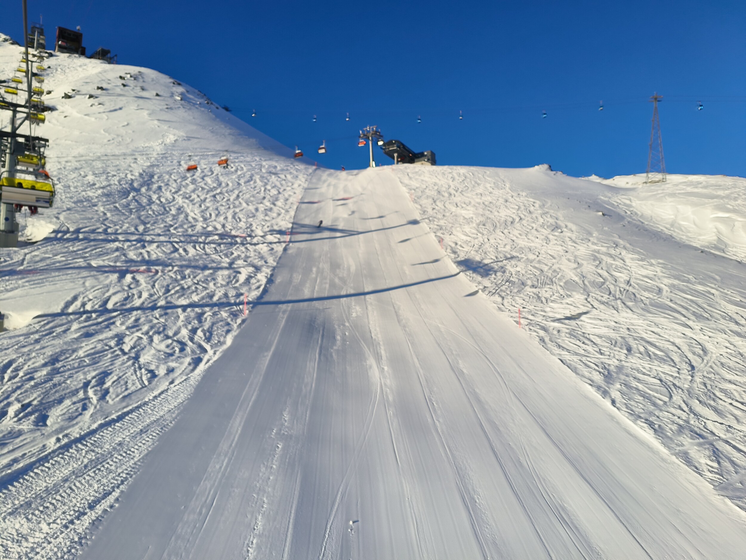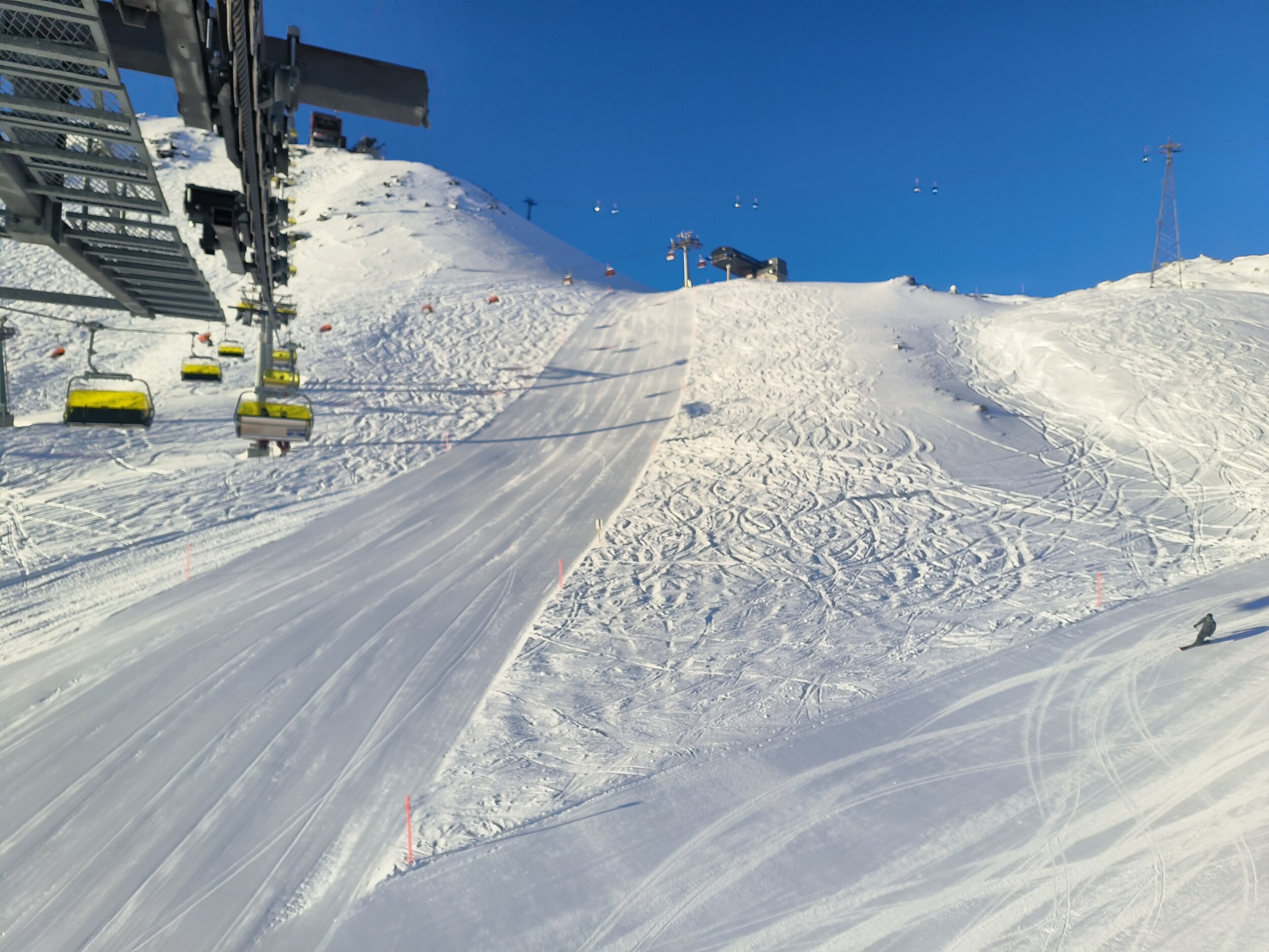 Das Gebiet Corviglia kenne ich übrigens von einem Besuch Anfang März 2014 in den Faschingsferien. Damals war es trotz Hochsaison ein toller Skitag. Deswegen war ich doch überrascht, dass in der Weihnachtszeit dort so viel mehr los ist. Könnte das an Tagesgästen aus Italien liegen, die Anfang März ...