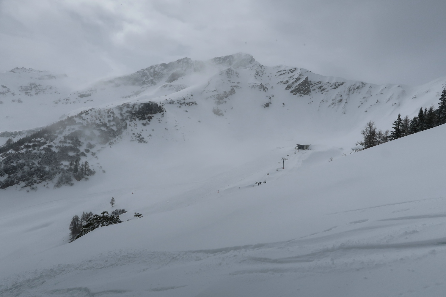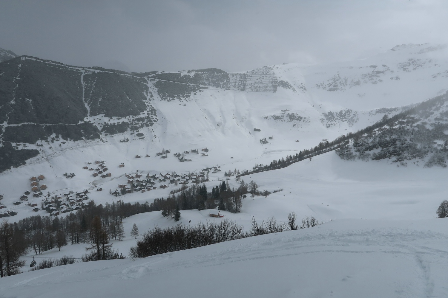 Die Seite Sareis mit den Abfahrten 10, 11 & 12 war für Skifahrer komplett gesperrt. Ich bin mir gerade nicht mehr sicher, ob die Sesselbahn für Fußgänger trotzdem offen hatte.