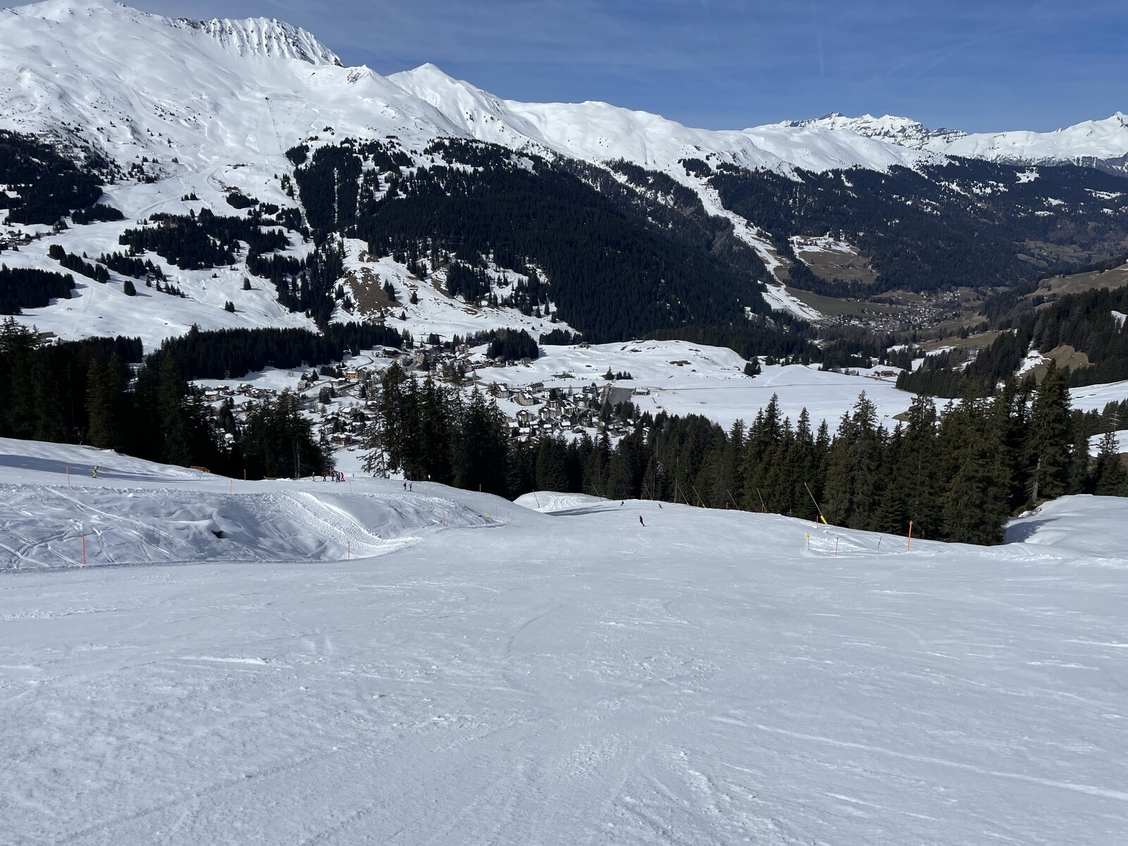 Die Talabfahrt nach Parpan ist momentan im unteren Bereich sehr breit.