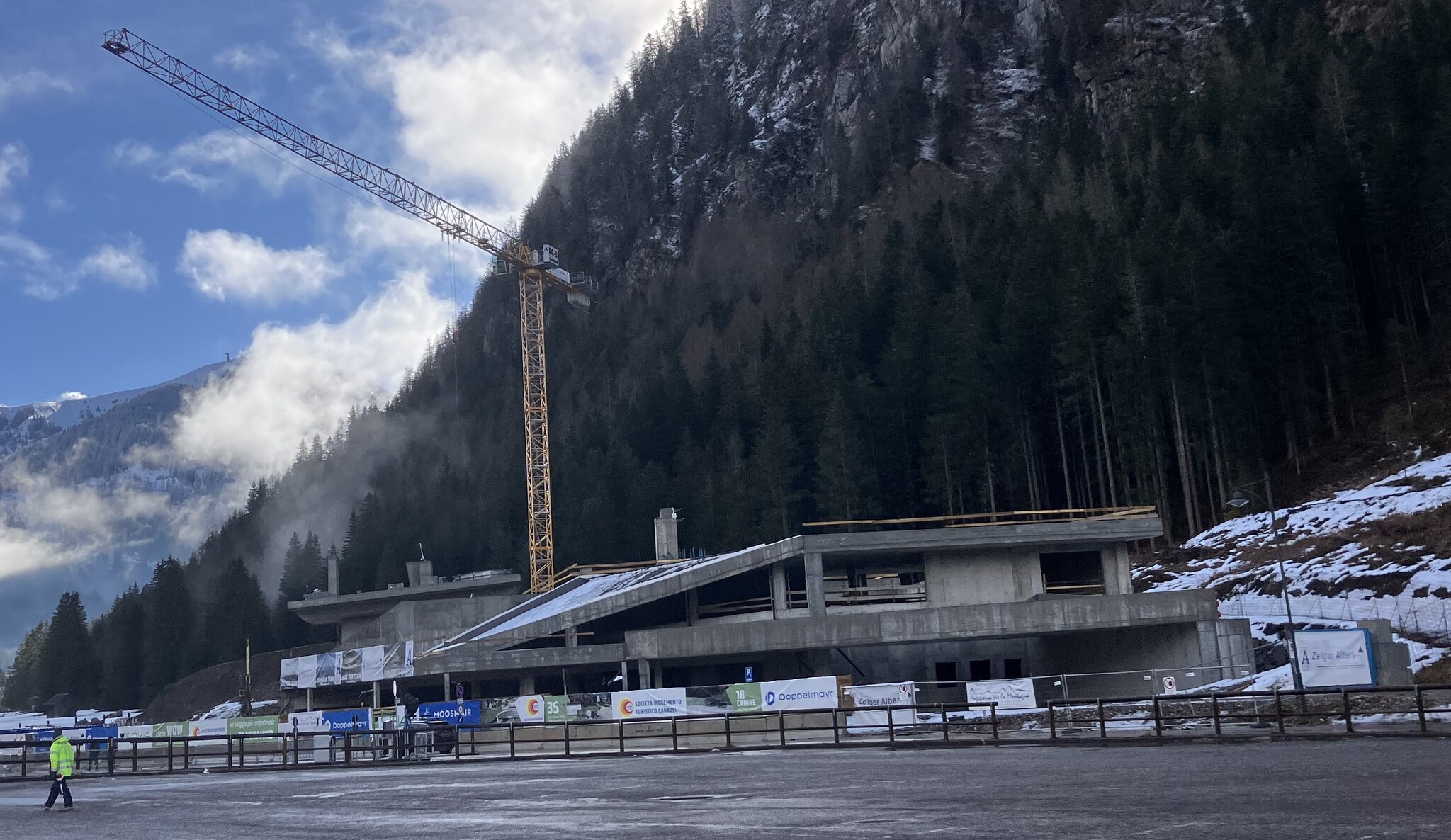 Doppelmayr muss da noch einen ziemlichen Effort leisten. Sieht noch alles andere als fertig aus.