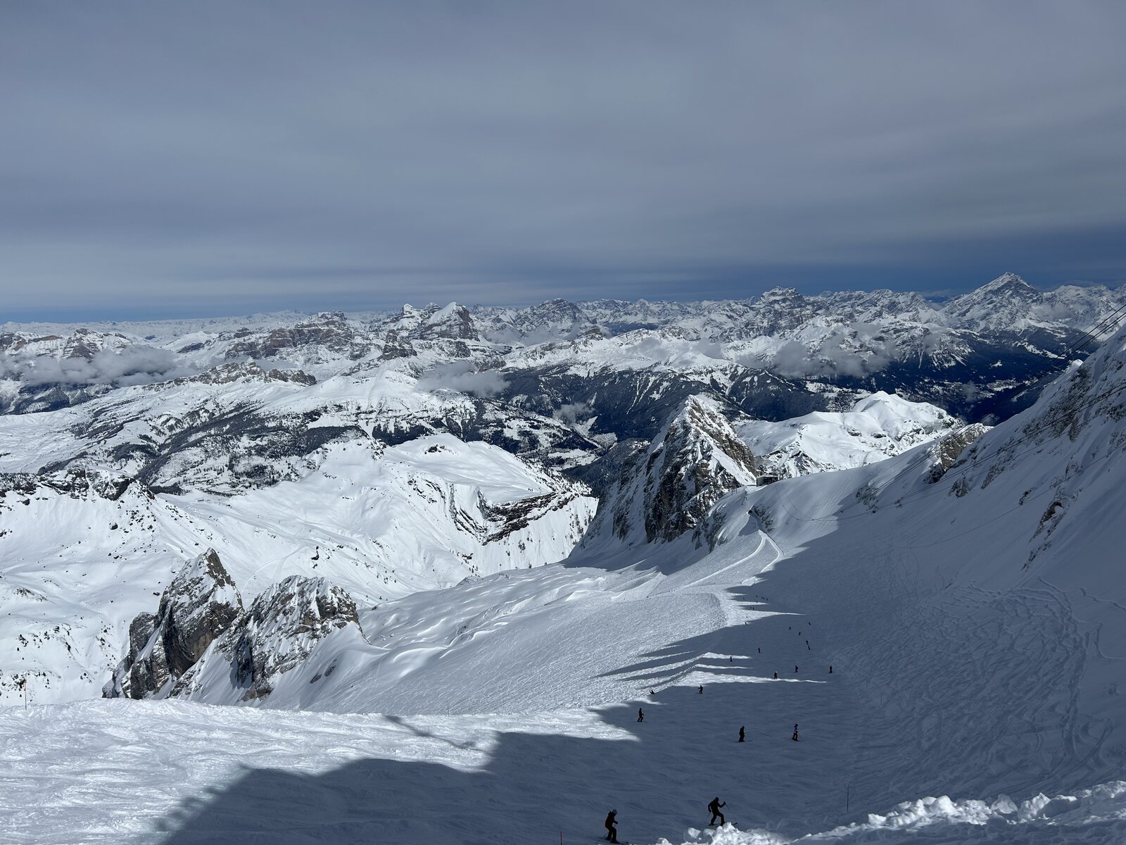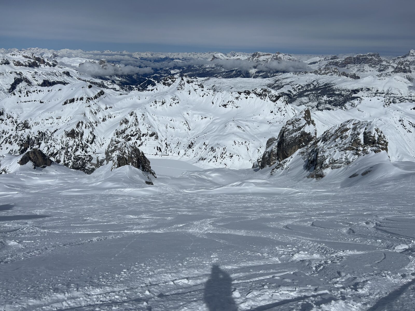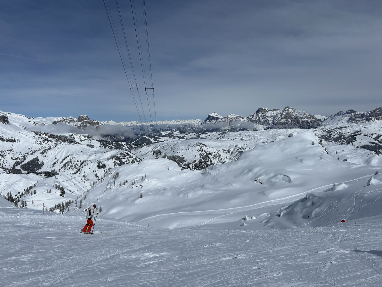 Aktuell ist das Wetter durchzogen und viel zu warm. Unter 2000 Meter, an Sonnenhängen auch noch höher, viel Sulz und Wasserschlachten. Die Nordhänge am Belvedere oben, Porta Vescovo, 5 Torri bieten aber noch pulvrige Hänge. Diese Woche sind spürbar weniger Leute unterwegs als noch letzten Donnerstag/Freitag.