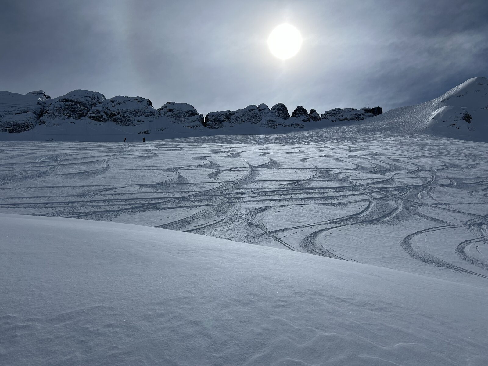 Fazit Sella Ronda (orange): Mega! Sofern man Pisten meiden konnte. Aber: Mega! Konnte überall durch frischen Neuschnee fahren, Wald, Gletscher, Querbeet irgendwie hat sich immer noch was gefunden!