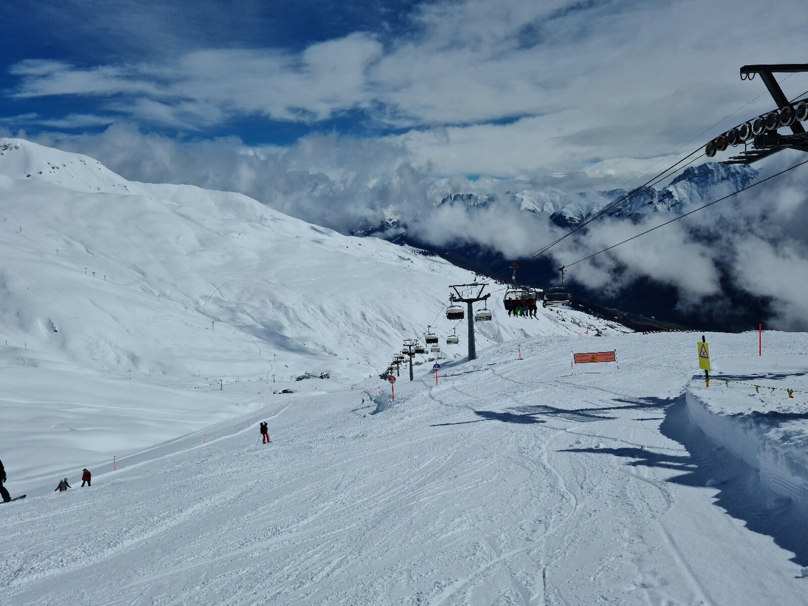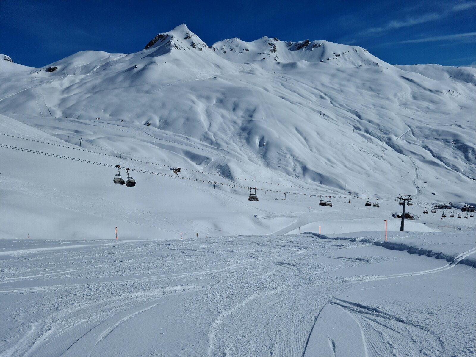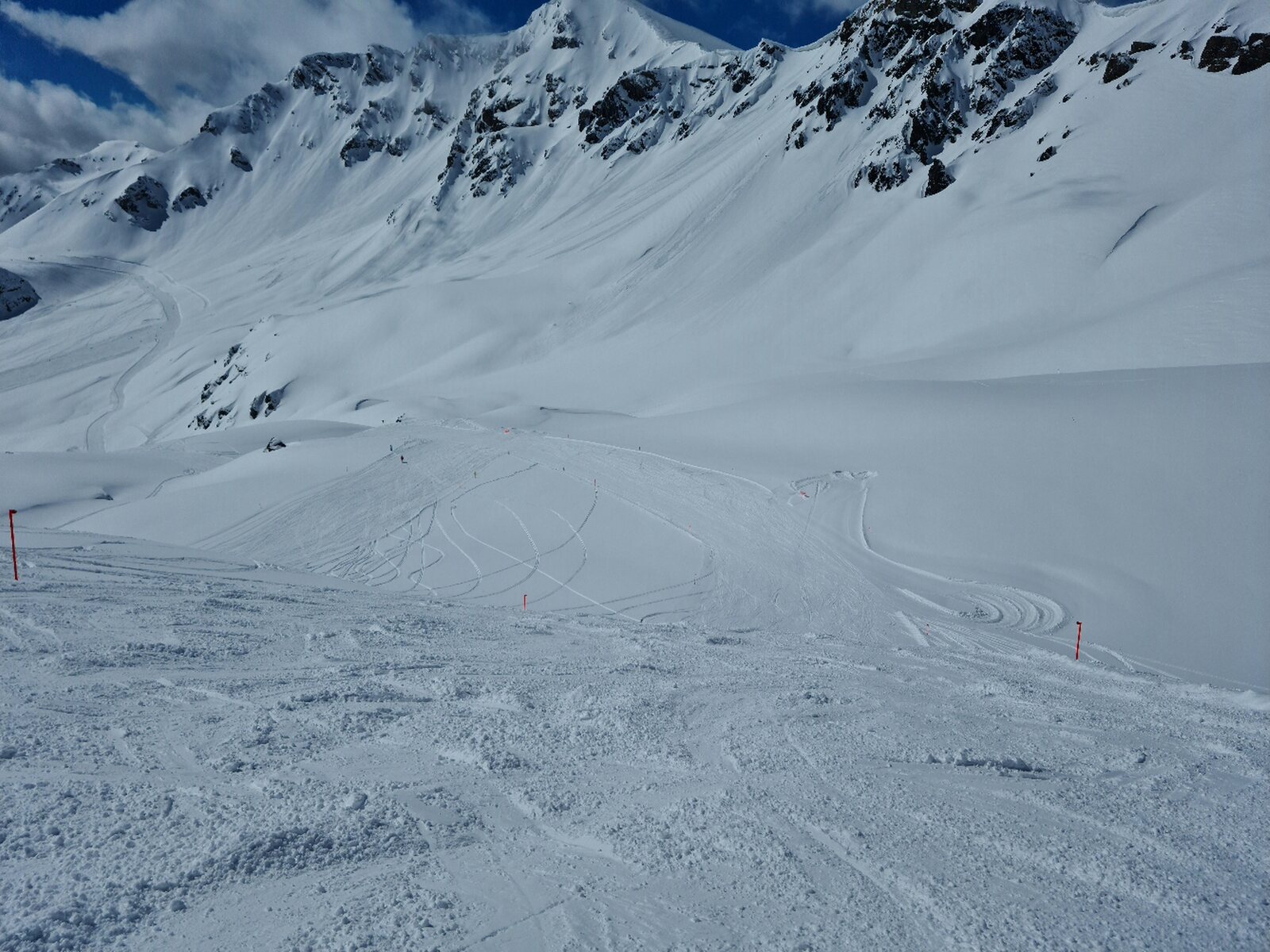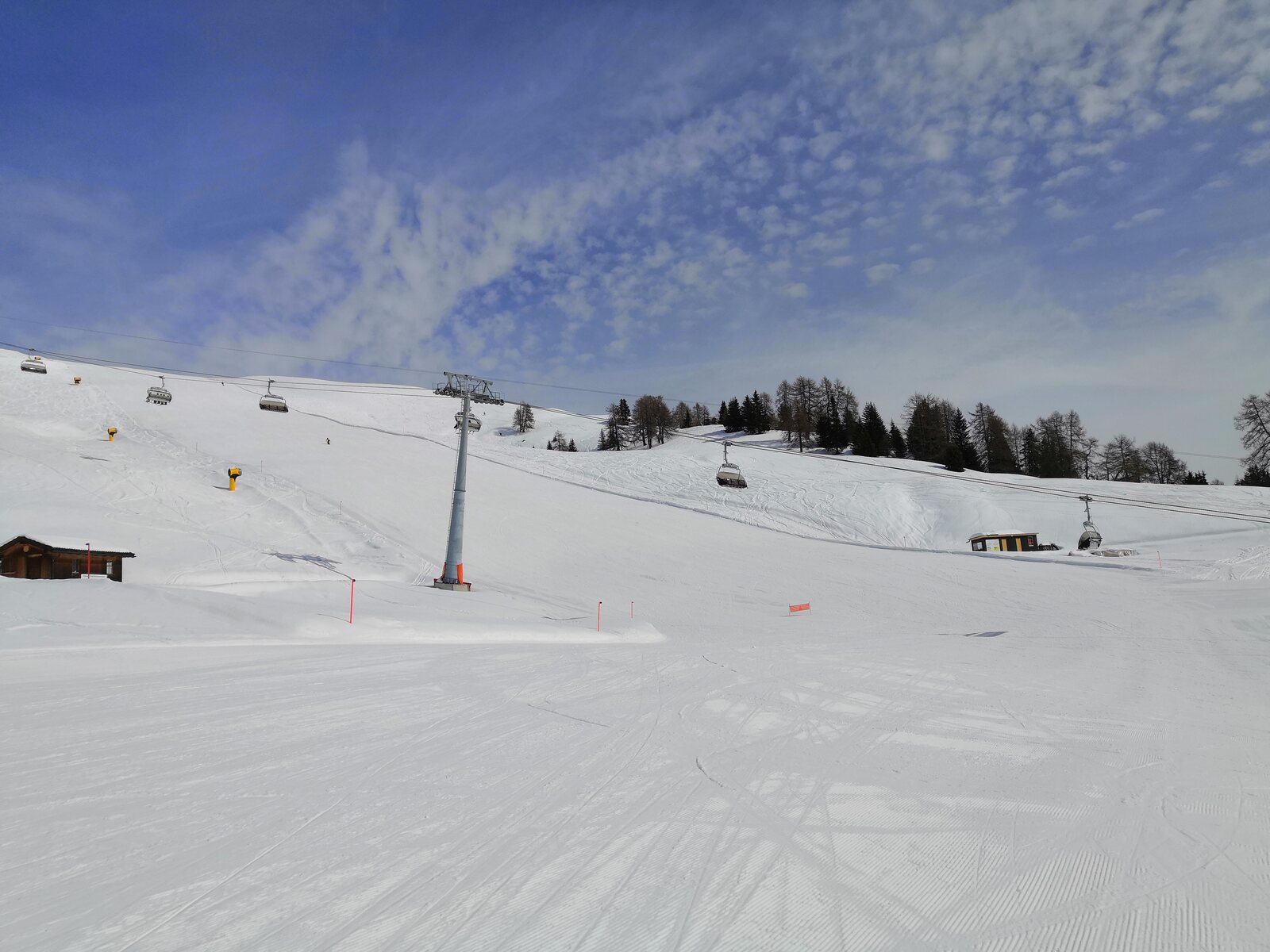 Die Pisten waren am Morgen in einem sehr guten Zustand, es hatte im Vergleich zu letztem Jahr genügend Schnee. Pisten alle sehr griffig mit Pulver-Riffel. Auch am Nachmittag haben die Pisten weitgehend gehalten bis auf ein paar neuralgische Stellen mit Buckeln.