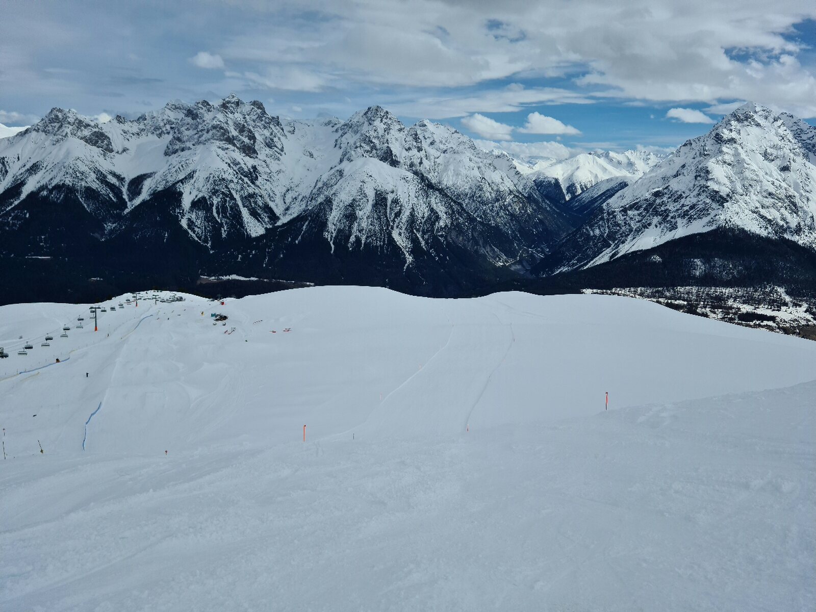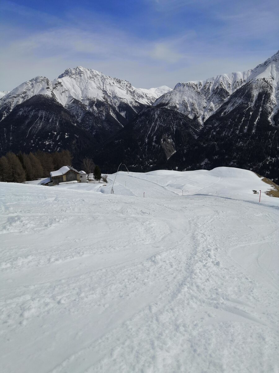 Heute war mein letzter Skitag in Scuol diese Saison- morgen und übermorgen geht es woanders hin. Vormittags gab es nochmal sehr gutes Wetter, nachmittags wurde es bewölkt und es zog Wind auf. Leider lag heute für meinen Geschmack etwas zu viel Neuschnee auf der Piste, welcher dann nachmittags zerfahren wurde. Es war ab mittags warm, selbst Champatsch wurde um 15 Uhr sulzig. An einigen Pisten konnte man bis zum Schluss schön schnell fahren. Heute machte ich 33 Liftfahrten, davon 18 am Champatsch.