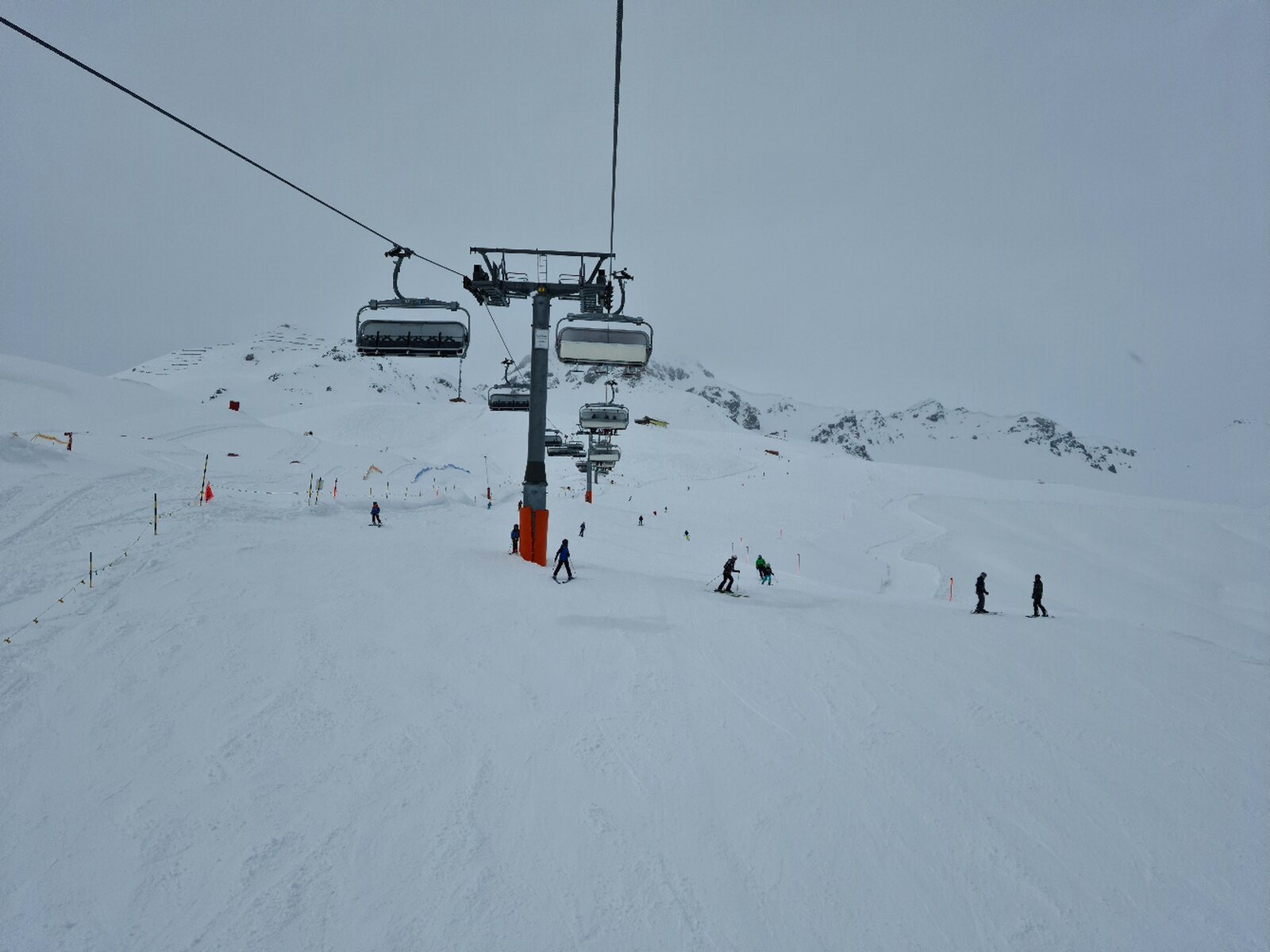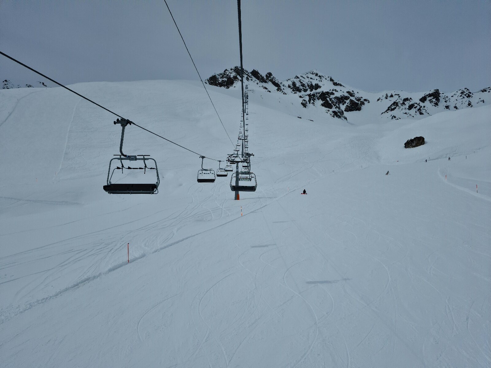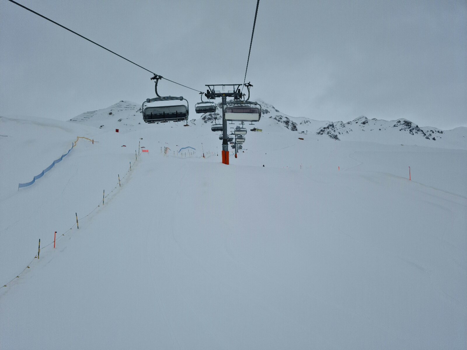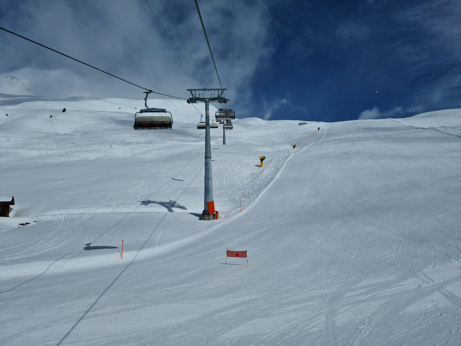 #26- Optisch einfach schön. Es fuhren ziemlich lange beide Champatschlifte fast leer, bis schließlich beide Lifte stoppten und nur noch der rechte fuhr, der aber auch nur noch maximal halb ausgelastet war. Fährt nicht sonst immer nur der linke?
