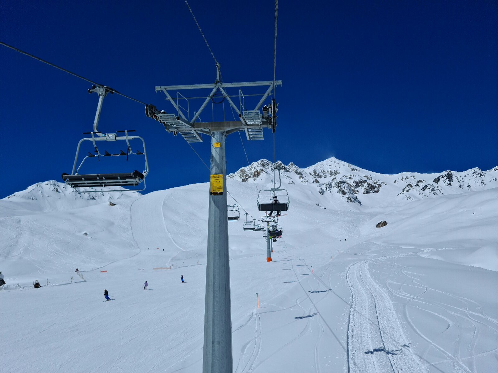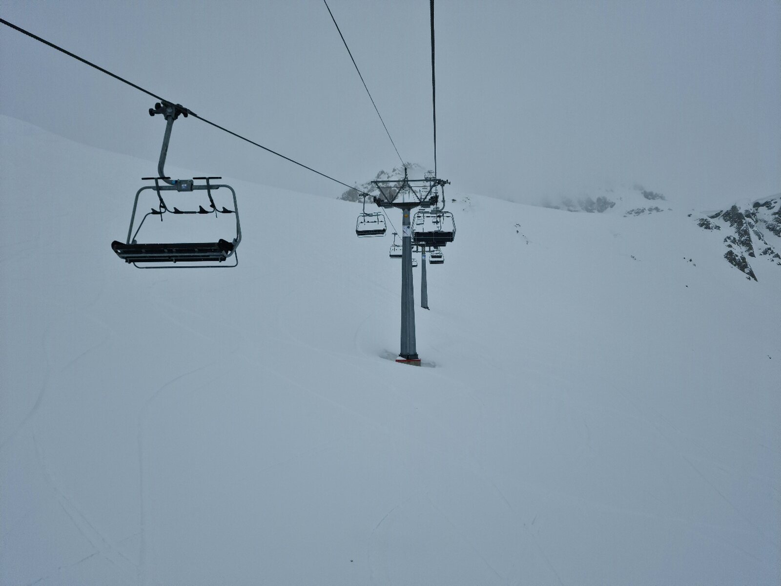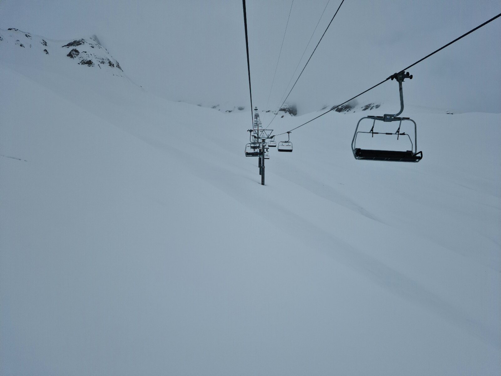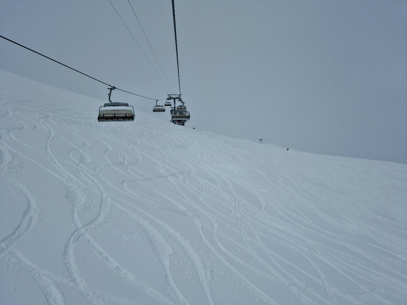 #26- Optisch einfach schön. Es fuhren ziemlich lange beide Champatschlifte fast leer, bis schließlich beide Lifte stoppten und nur noch der rechte fuhr, der aber auch nur noch maximal halb ausgelastet war. Fährt nicht sonst immer nur der linke?
