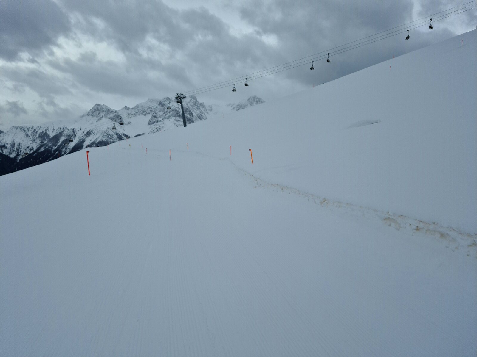 Zum ersten Mal überhaupt bin ich die Traumpiste runter. Bis zum Restaurant in einem hervorragendem Zustand, die Ziehwege nachher waren ziemlich verfahren.