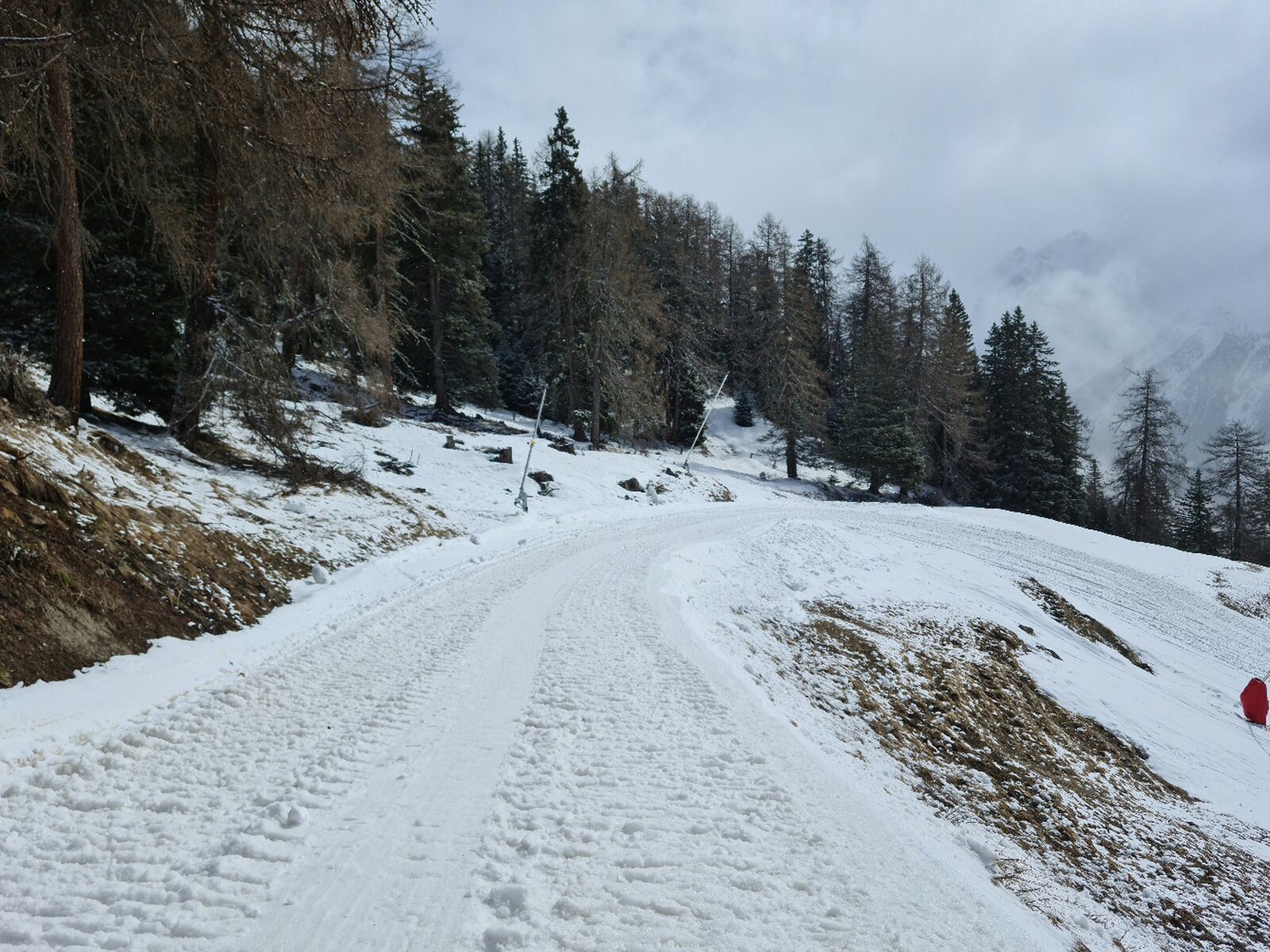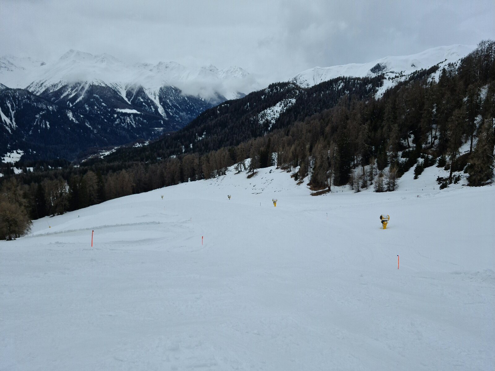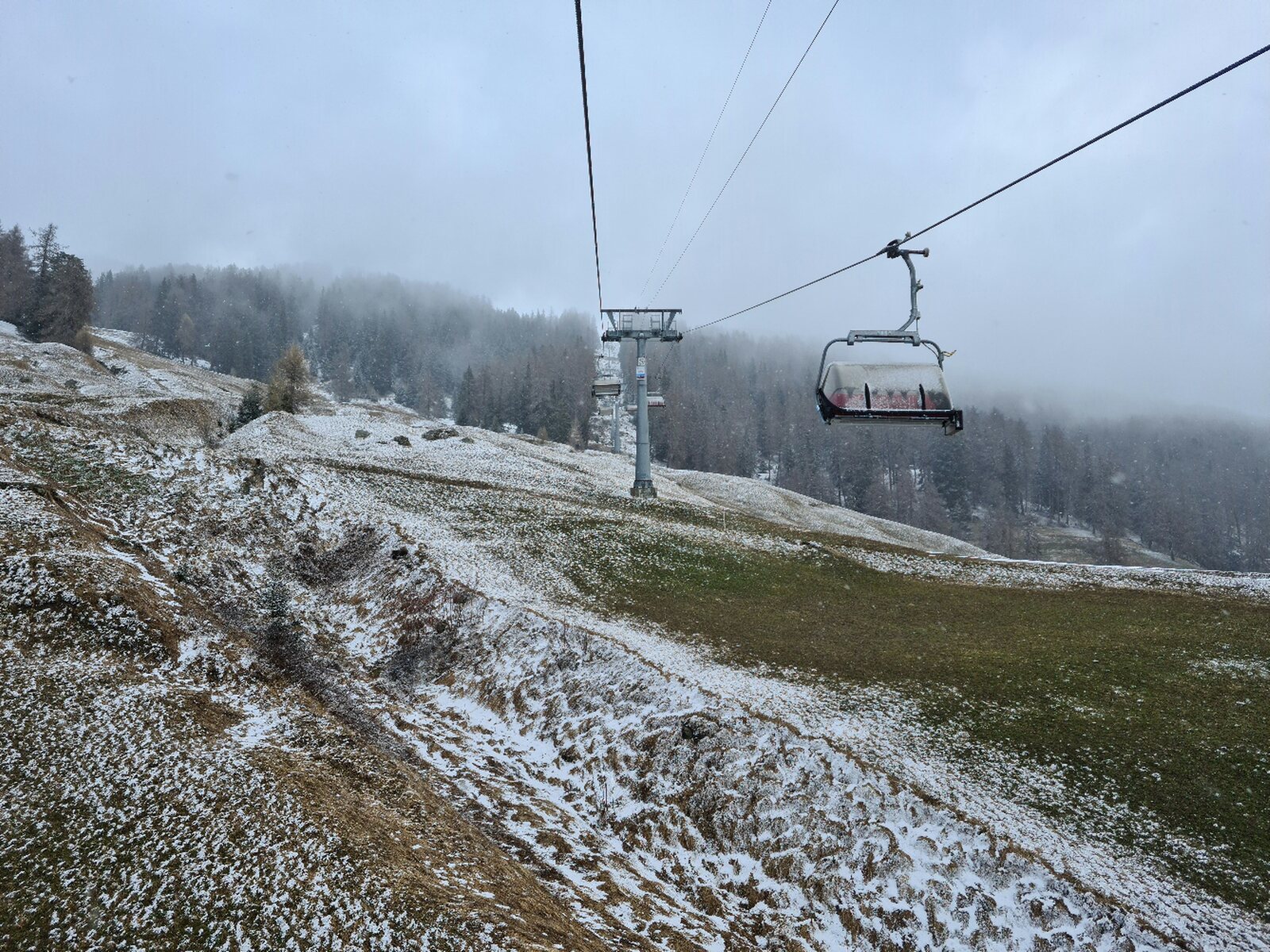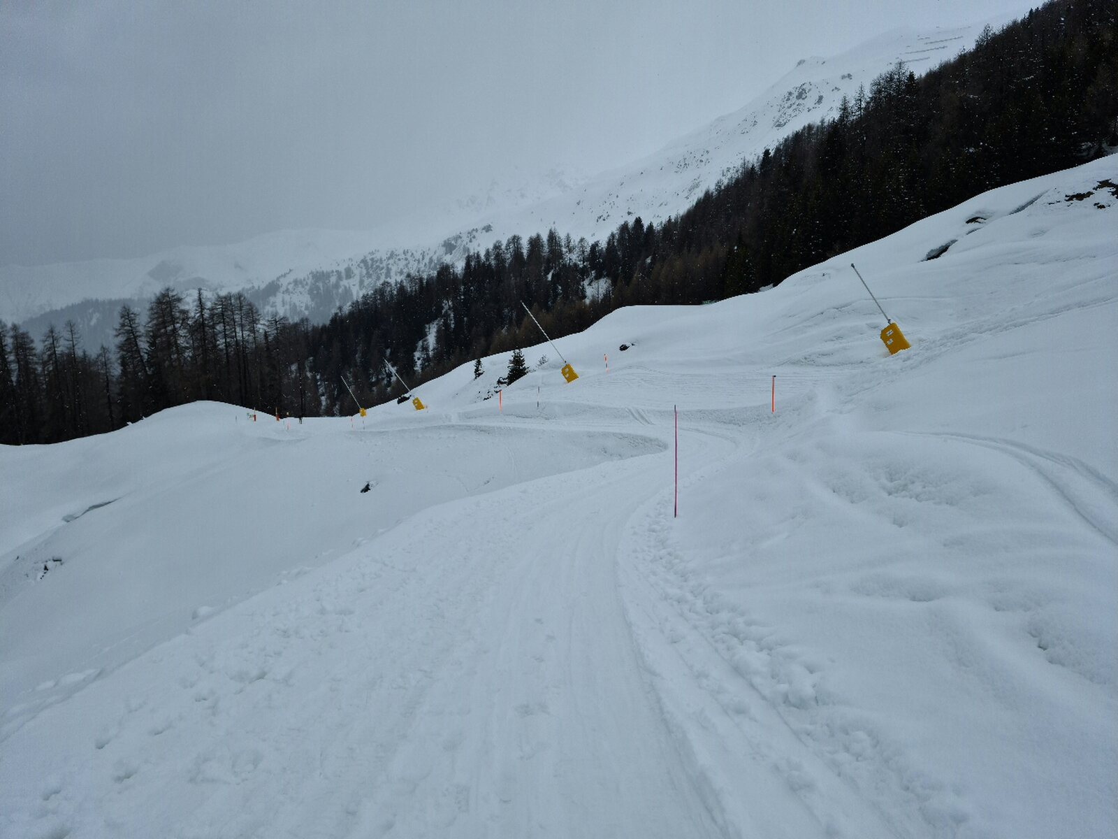 #4- Im Schneefall fuhr ich erstmal nur an Mot da Ri und Clünas. Die Champatschlifte waren da noch oben im Nebel.
