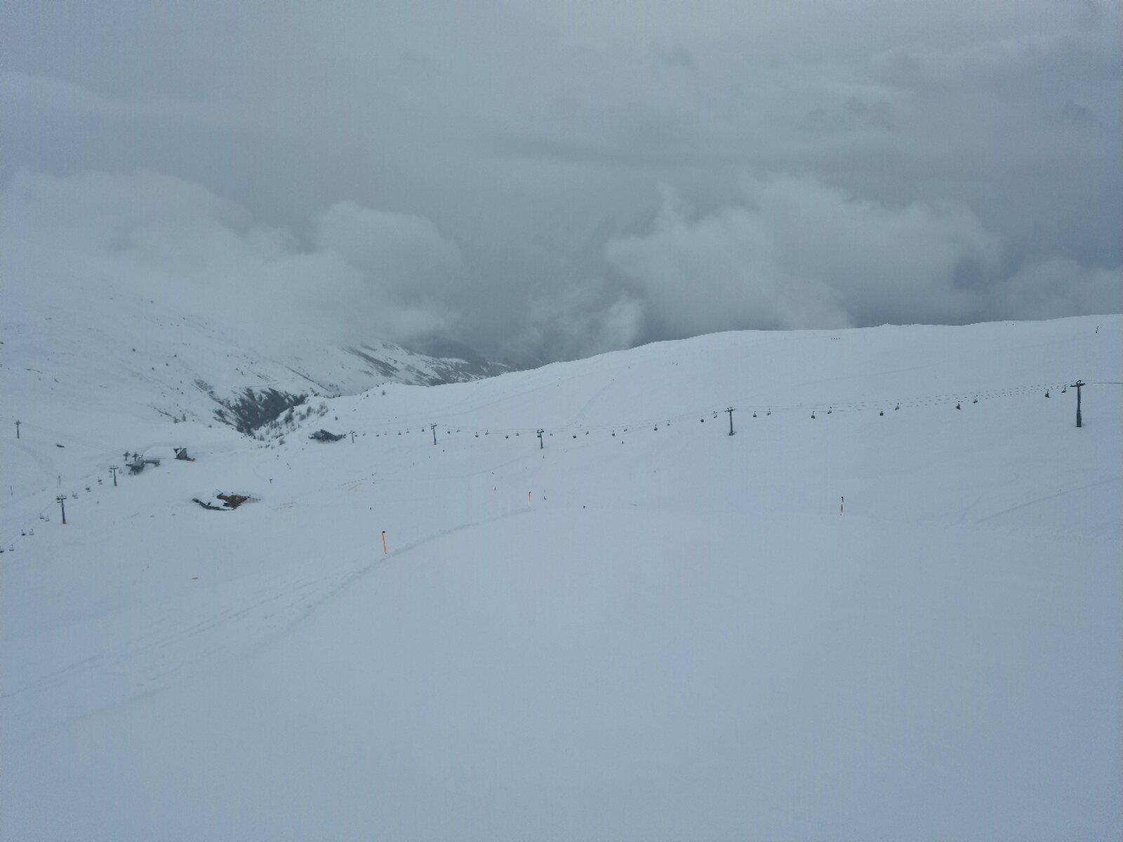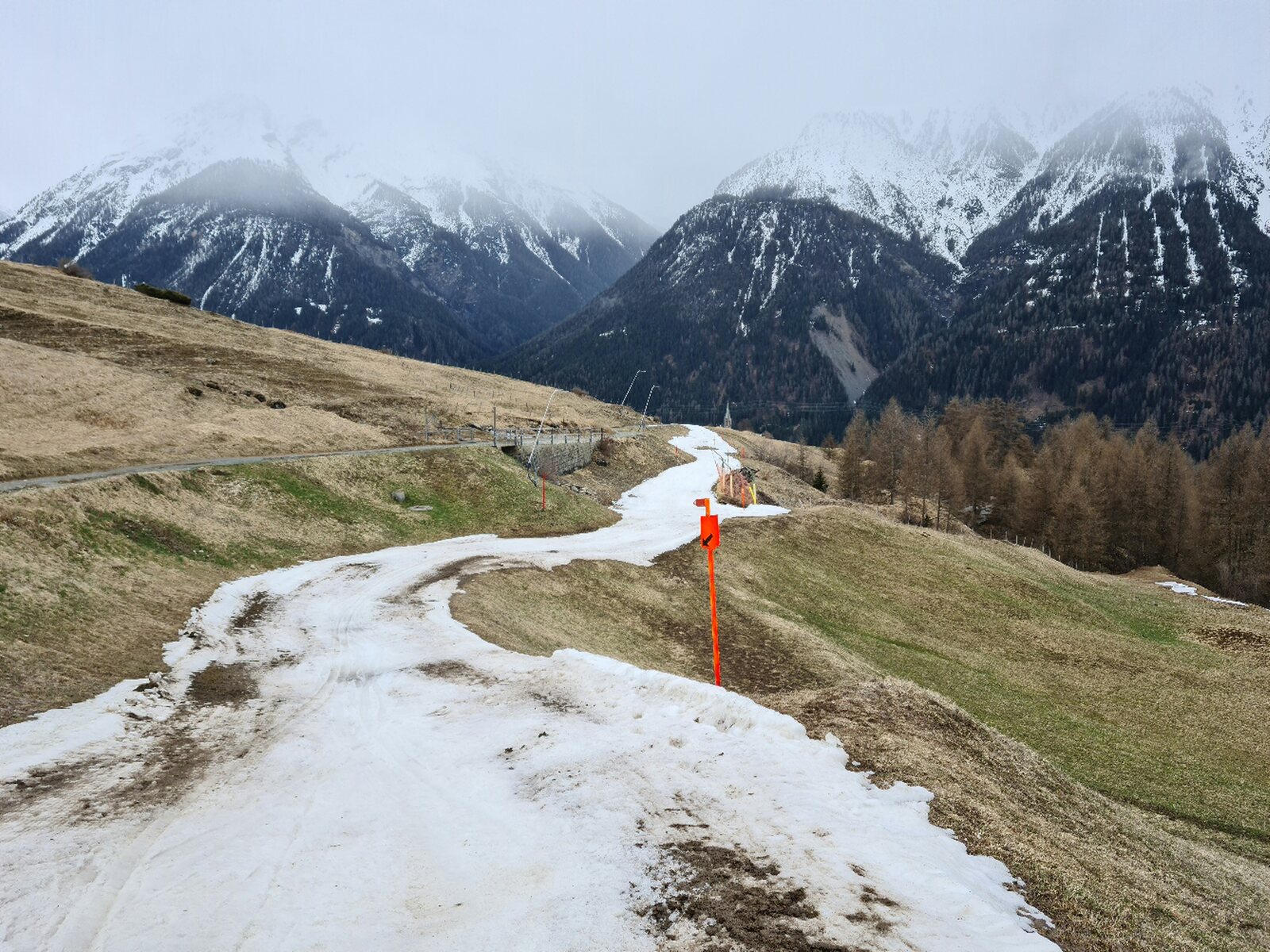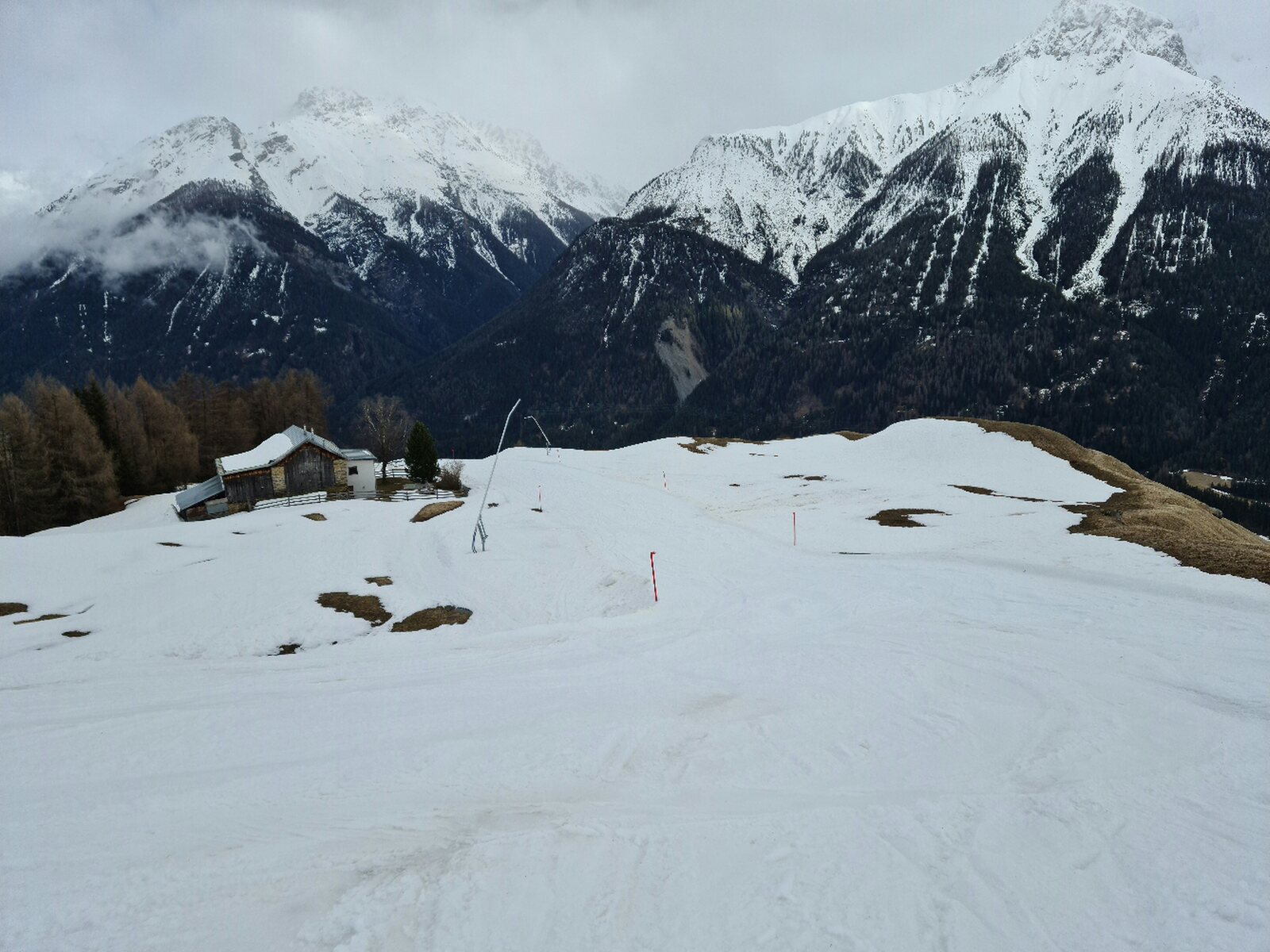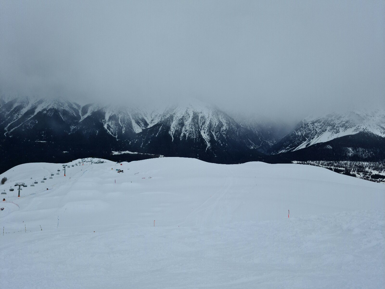 #4- Im Schneefall fuhr ich erstmal nur an Mot da Ri und Clünas. Die Champatschlifte waren da noch oben im Nebel.