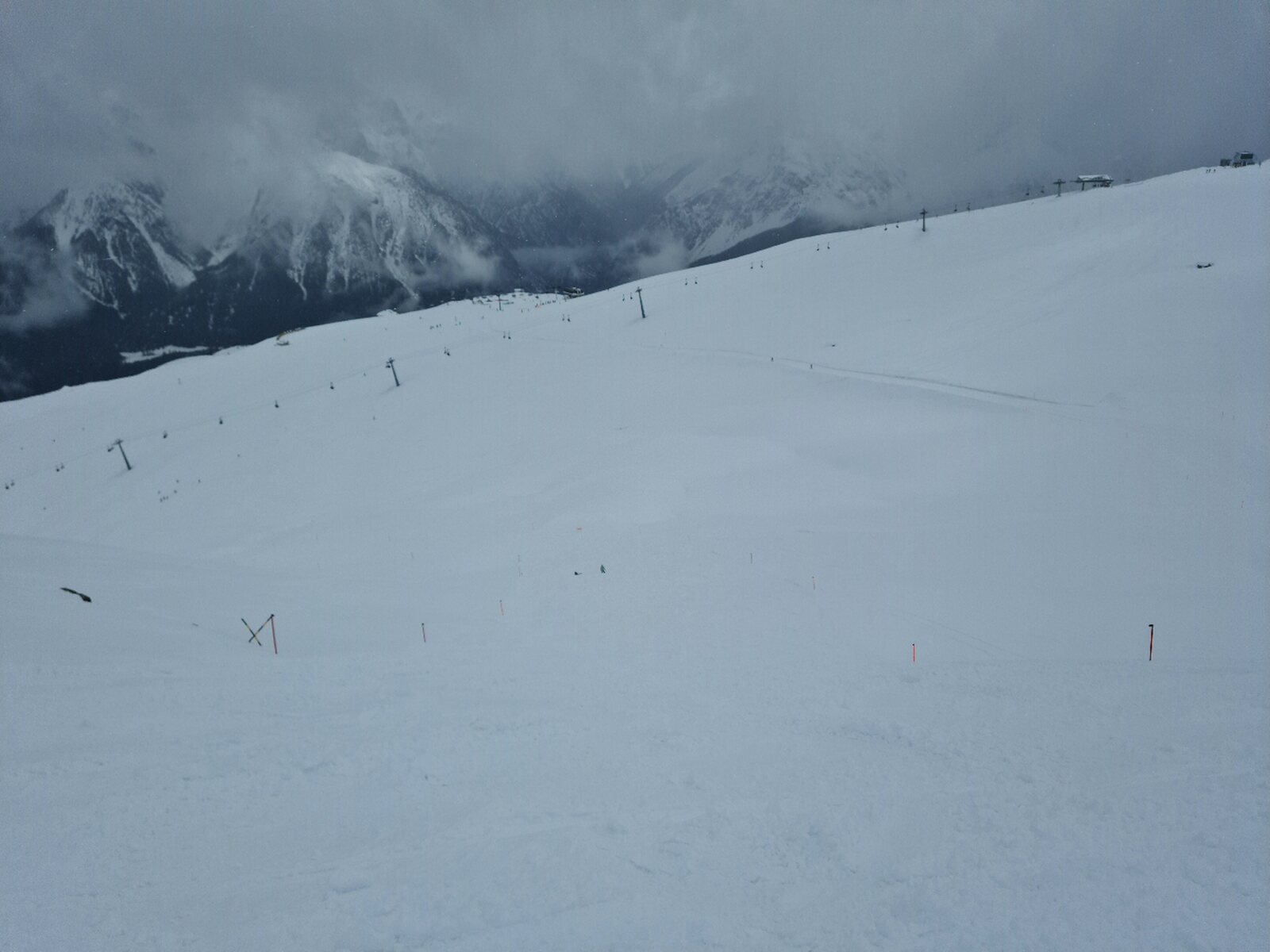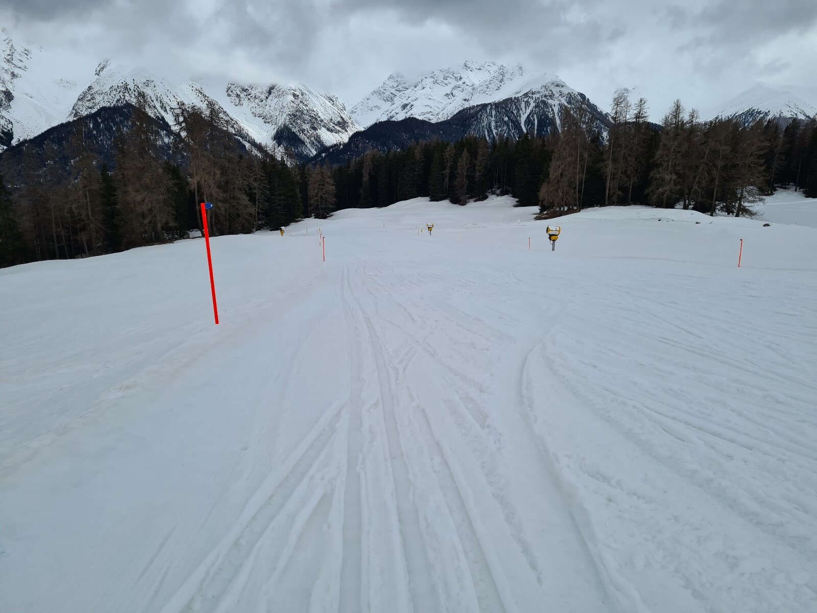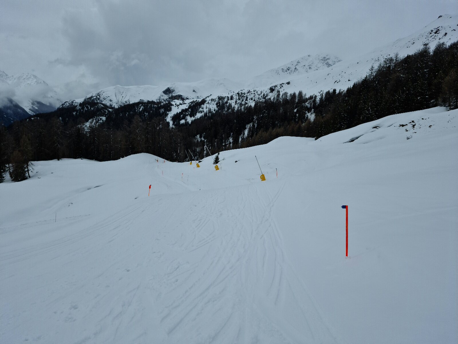 Heute war ein unerwartet guter Tag. Das Wetter war Vor- und Nachmittags schlecht, aber etwa von 10:30 Uhr bis 15:00 Uhr war es gut bis in Ordnung. Die Pisten waren traumhaft und das Gebiet leer. Selbst als man keine gute Bodensicht mehr hatte konnte man schnell fahren, die Pisten waren bis zum Schluss in einem top Zustand. Dabei haben auch die ausgezeichneten Pistenmarkierunhen geholfen. Das Highlight waren die Schlepplifte am Piz Champatsch, denn sie waren leer (es lief ganztags nur der rechte) und die Pisten genial. An ihnen machte ich 22 von 39 Fahrten. Mit deutlich über 12.000 Höhenmetern auch mein Saisonrekord.