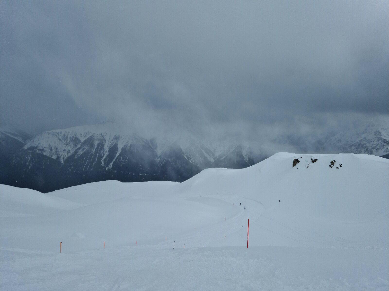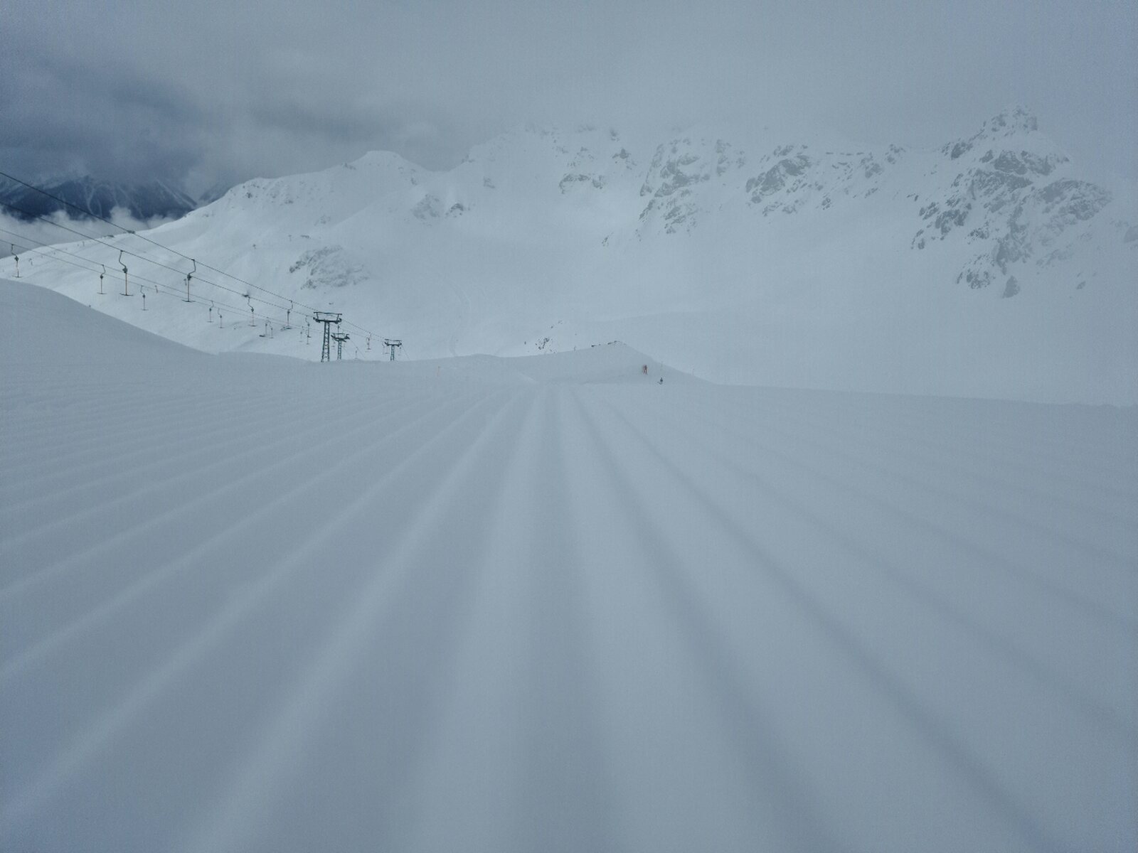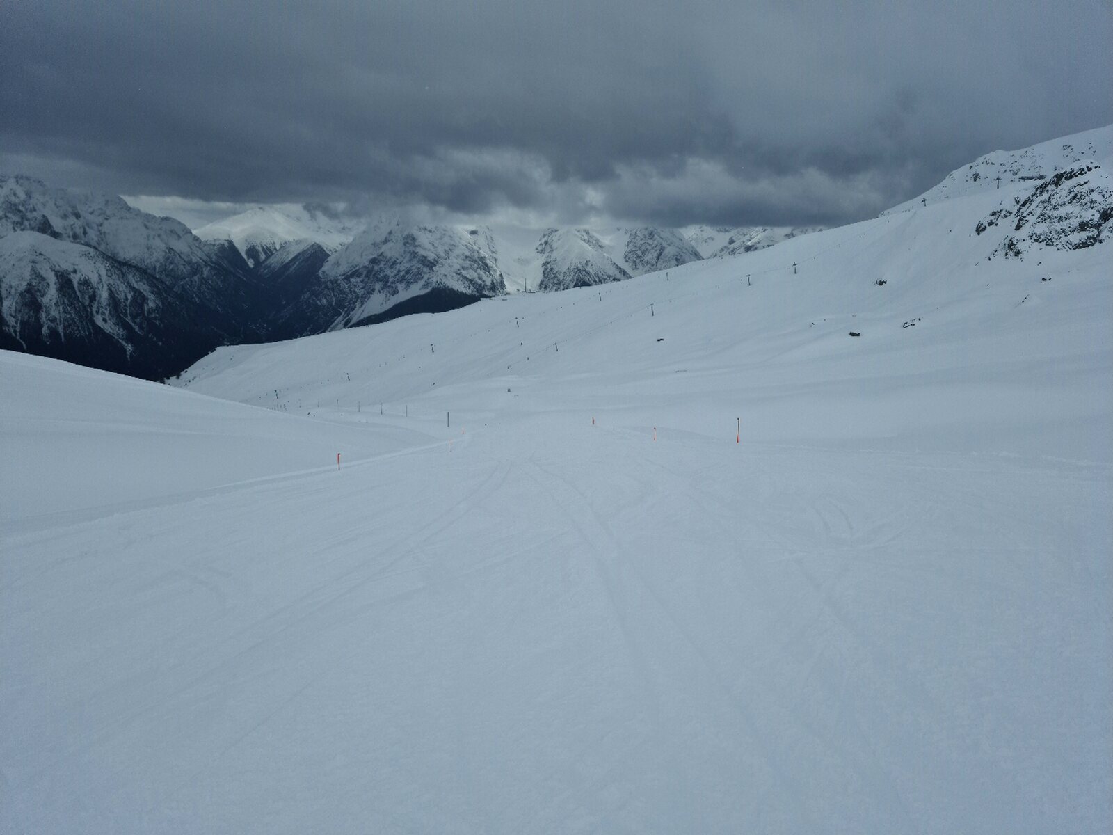 Heute war ein unerwartet guter Tag. Das Wetter war Vor- und Nachmittags schlecht, aber etwa von 10:30 Uhr bis 15:00 Uhr war es gut bis in Ordnung. Die Pisten waren traumhaft und das Gebiet leer. Selbst als man keine gute Bodensicht mehr hatte konnte man schnell fahren, die Pisten waren bis zum Schluss in einem top Zustand. Dabei haben auch die ausgezeichneten Pistenmarkierunhen geholfen. Das Highlight waren die Schlepplifte am Piz Champatsch, denn sie waren leer (es lief ganztags nur der rechte) und die Pisten genial. An ihnen machte ich 22 von 39 Fahrten. Mit deutlich über 12.000 Höhenmetern auch mein Saisonrekord.