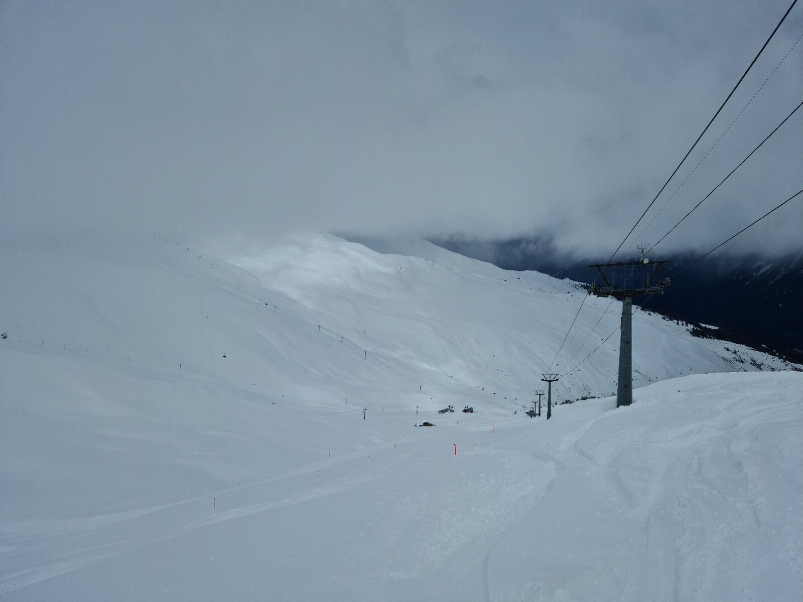 #7- Kurz vor 10:30 Uhr fuhr ich dann zu den Champatschliften. Der oberste Teil war da noch im Nebel.