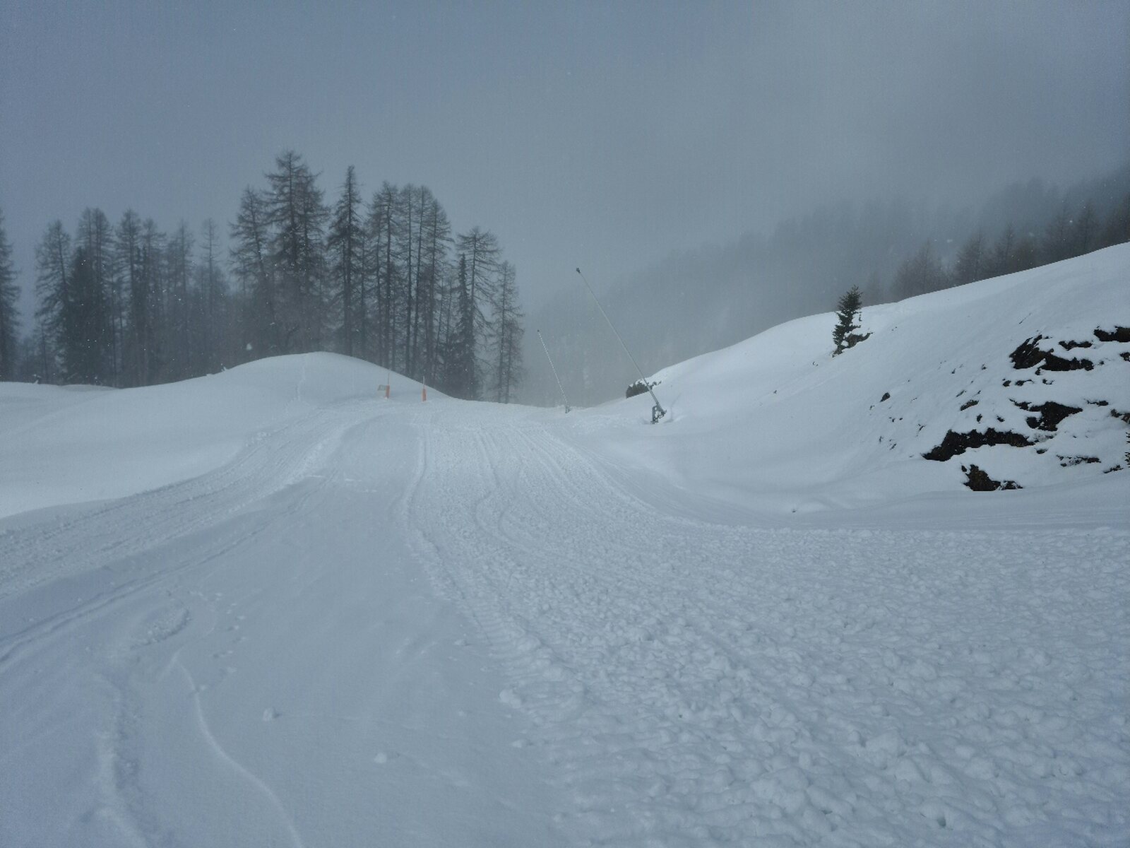 #26- Zum Schluss wurde es nebelig. Dank der guten Pistenmarkierungen und des guten Pistenzustands ging das Fahren aber noch fast so gut wie vorher.