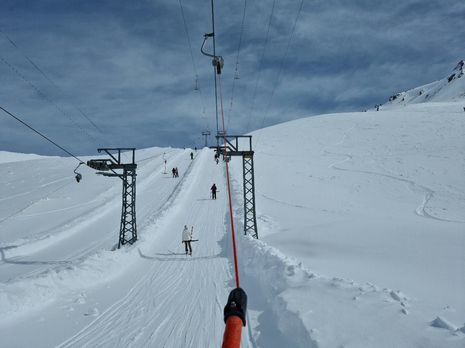 Heute war aber der riesige Vorteil des Schlepplifts, dass er schwach frequentiert war. Da das Wetter unbeständig war, sind viele an den Haubensesselbahnen geblieben. Der Champatschlift hatte einfach eine viel geringere Auslastung. Abgesehen davon haben Schlepplifte bei mir immer Sympathiepunkte, aber das ist wohl mei den meisten umgekehrt.