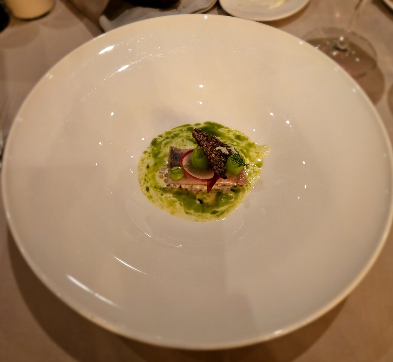 Das Malzbrot hatte eine fast kuchenartige Konsistenz, in Kombination mit der würzigen Butter war das aber ein schöner Kontrast. Etwas, was sich noch weiter durch das Menü ziehen sollte.