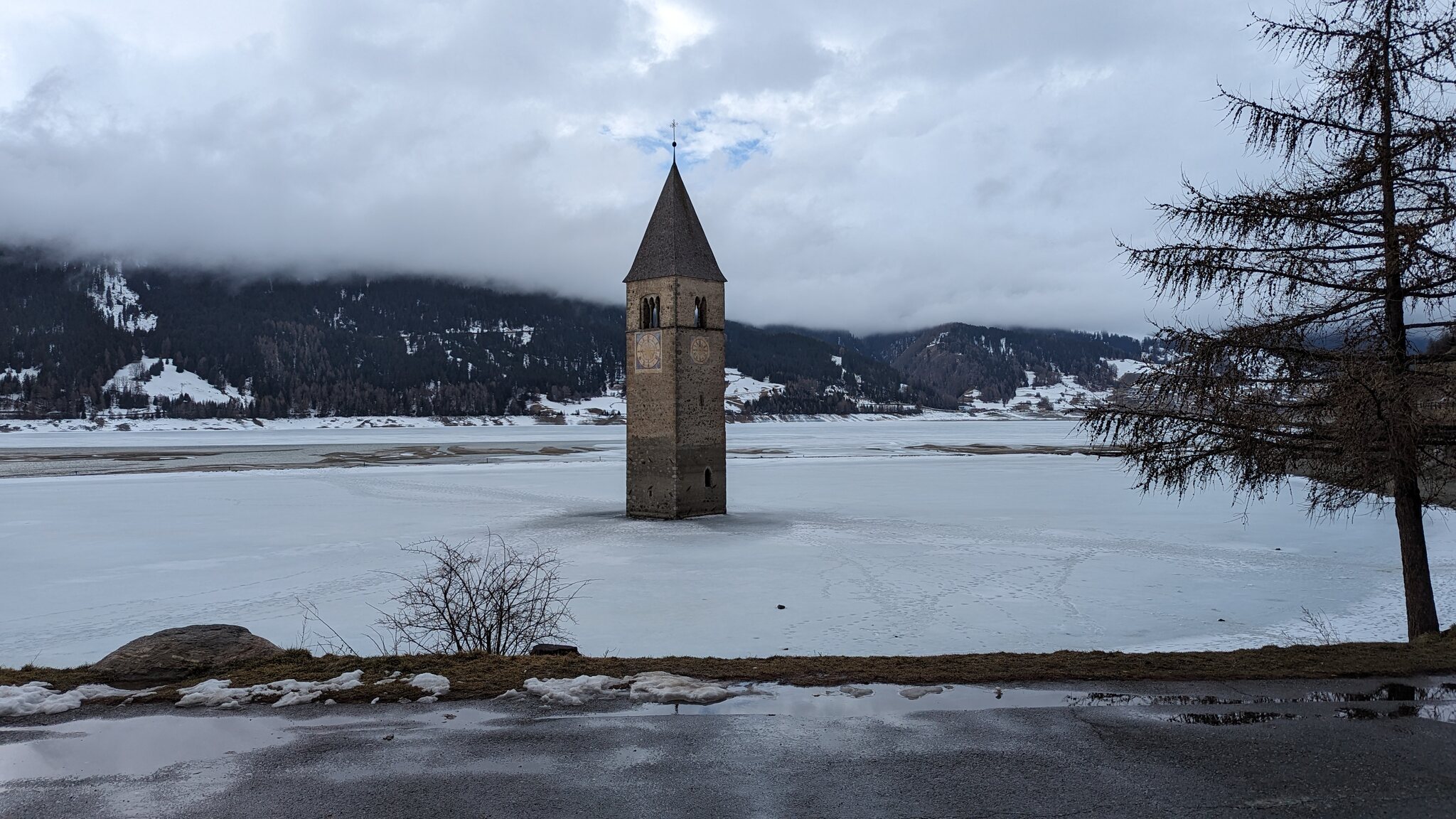 Es ging jetzt fast ohne Schnee über den Reschenpass, sogar ganz ohne Maut