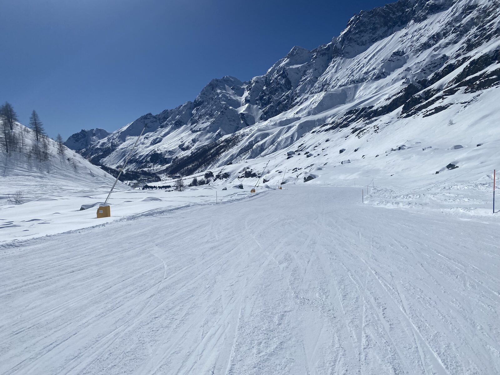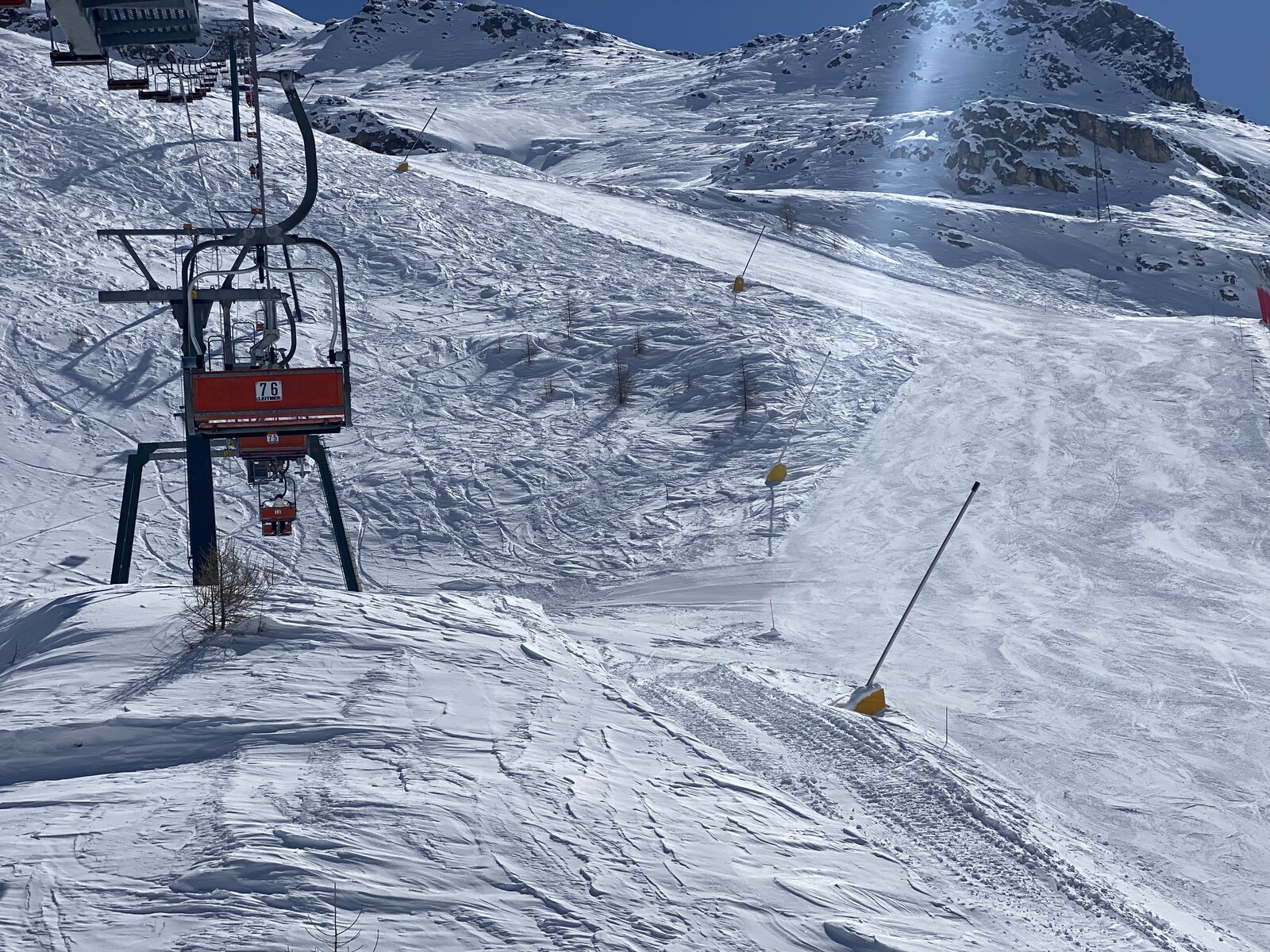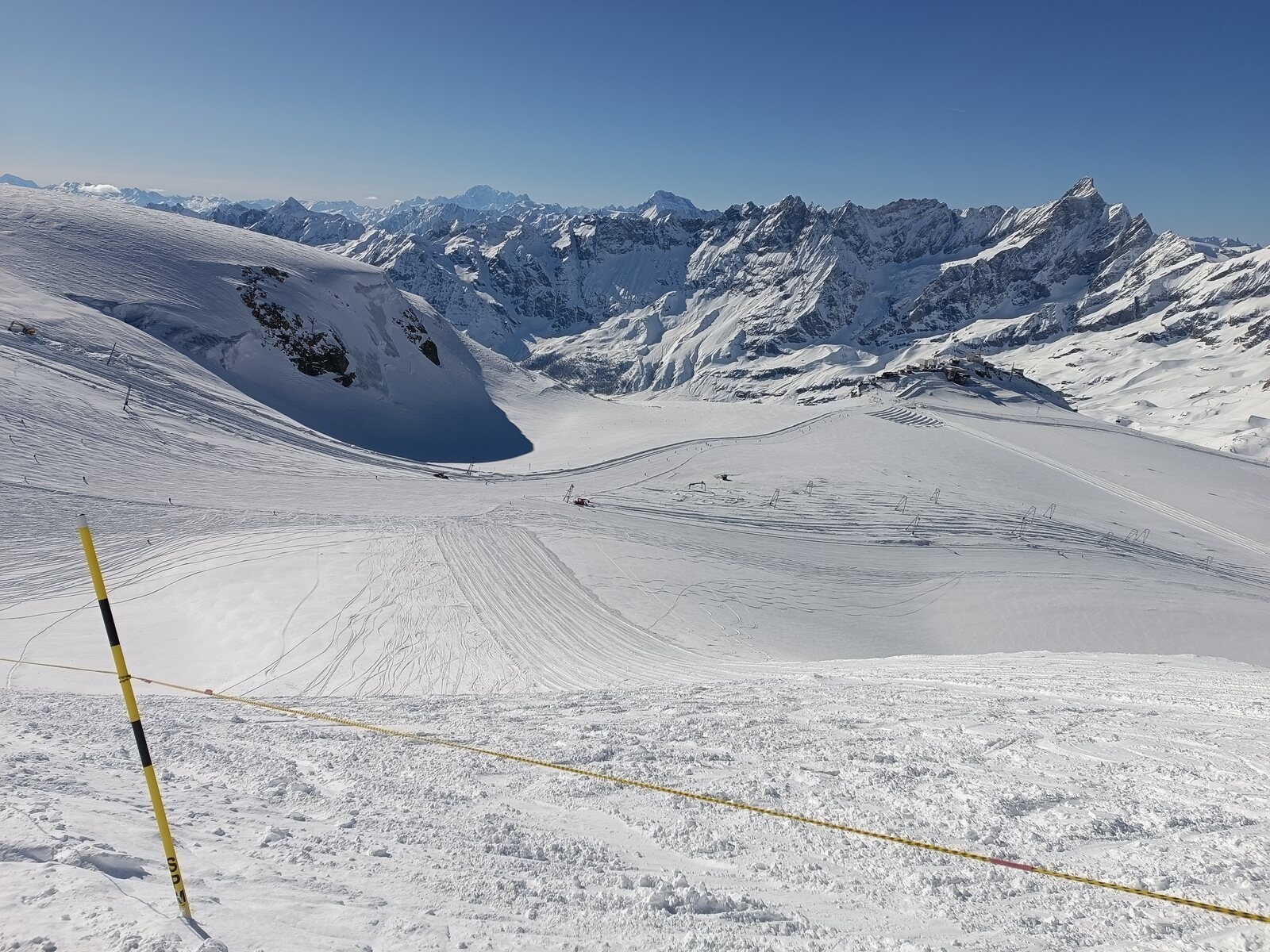 Am Gifthittli hatte ich um 10:00 ein FBM für mich, und das an einem Grosskampftag: Bec Carré, tolle Schneelage, nicht alle Pisten offen: Totales Gewusel am Cieloalto: Rückführpiste, so gut wie noch nie: 5 Richtung Cervinia: Hier wartete ich eine Kabine: Zum Schluss noch an der Kumme: