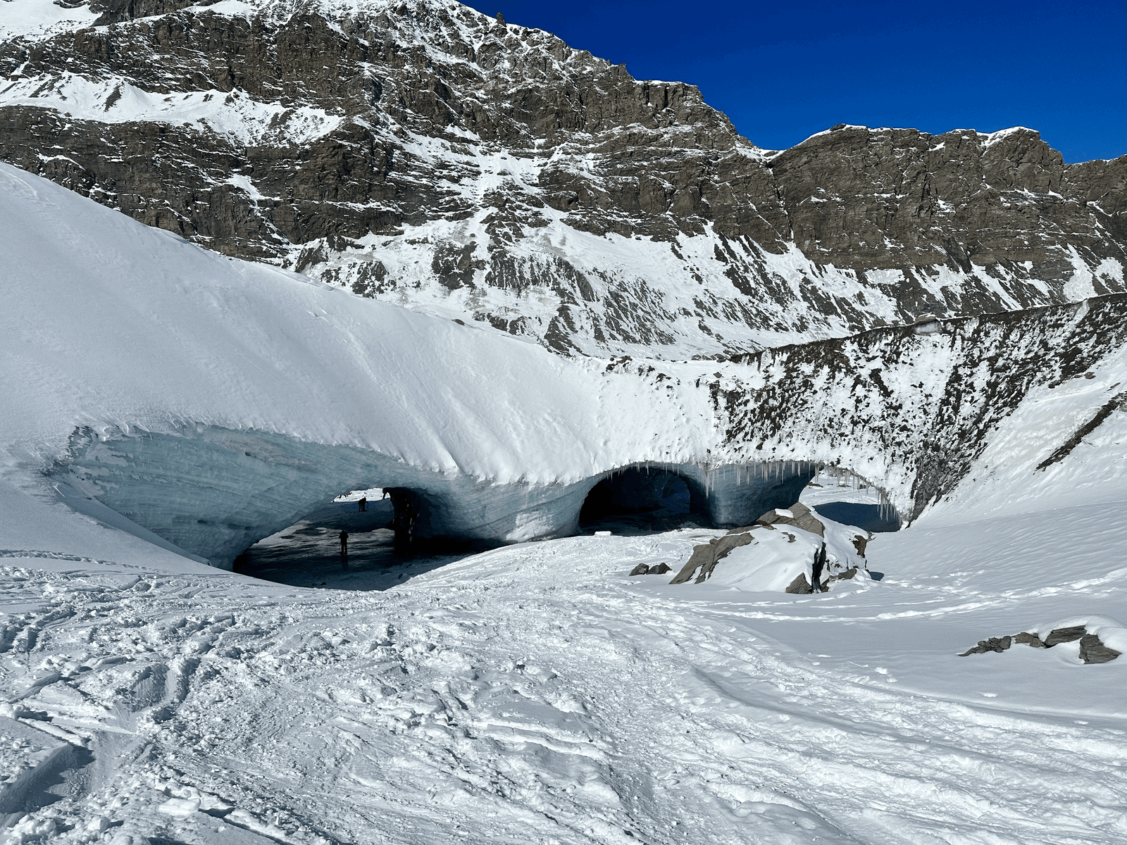 RIP an zwei der berühmten Eishöhlen unterhalb des Matterhorns am Ende des Furgggletschers, die diesen Sommer wohl weggeschmolzen sind. Als ich heute da abgefahren bin, hab ich nicht schlecht gestaunt. Vergleich zu März 2023. Die Schneelage ist dieses Jahr viel, viel besser, aber das Eis ist weg. Die oberen Höhlen und Eistunnel, die noch näher am Matterhorn sind, sind intakt. Enjoy while it lasts.