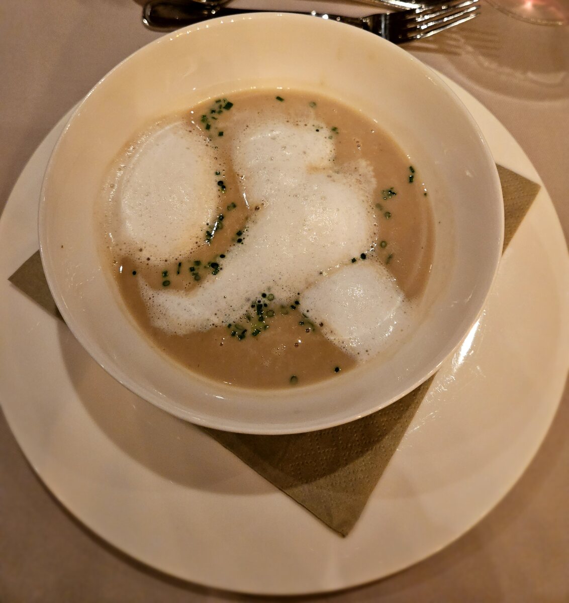 Bei der folgenden Velouté von der Kastanie mit Steinpilz war ich mir nicht sicher, ob nicht noch ein Hauch Trüffelöl im Spiel war.