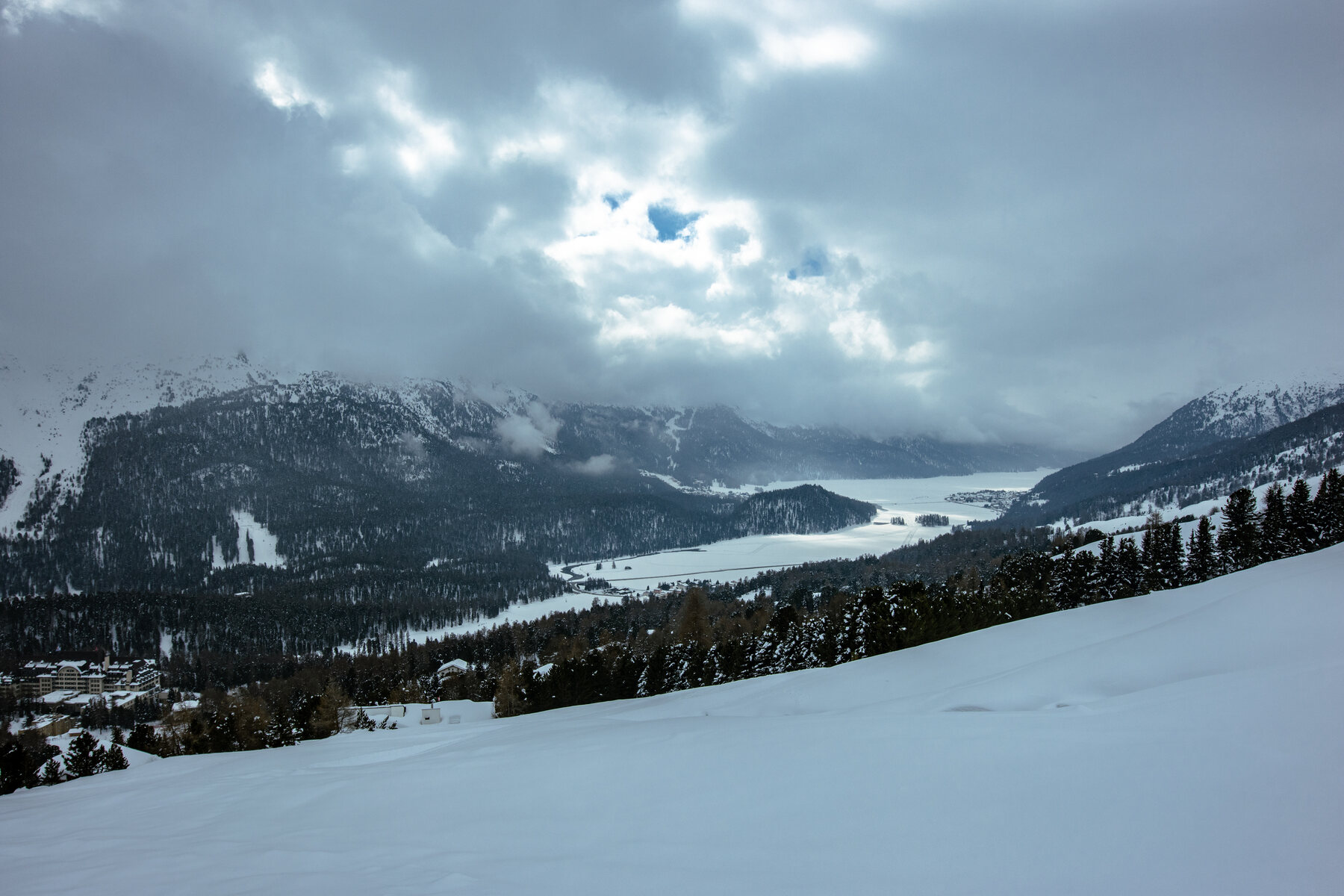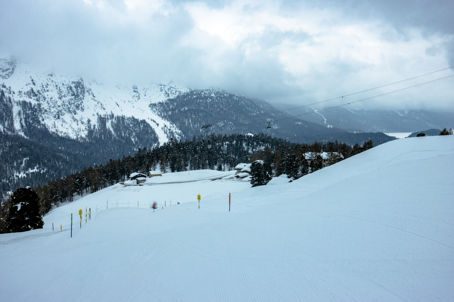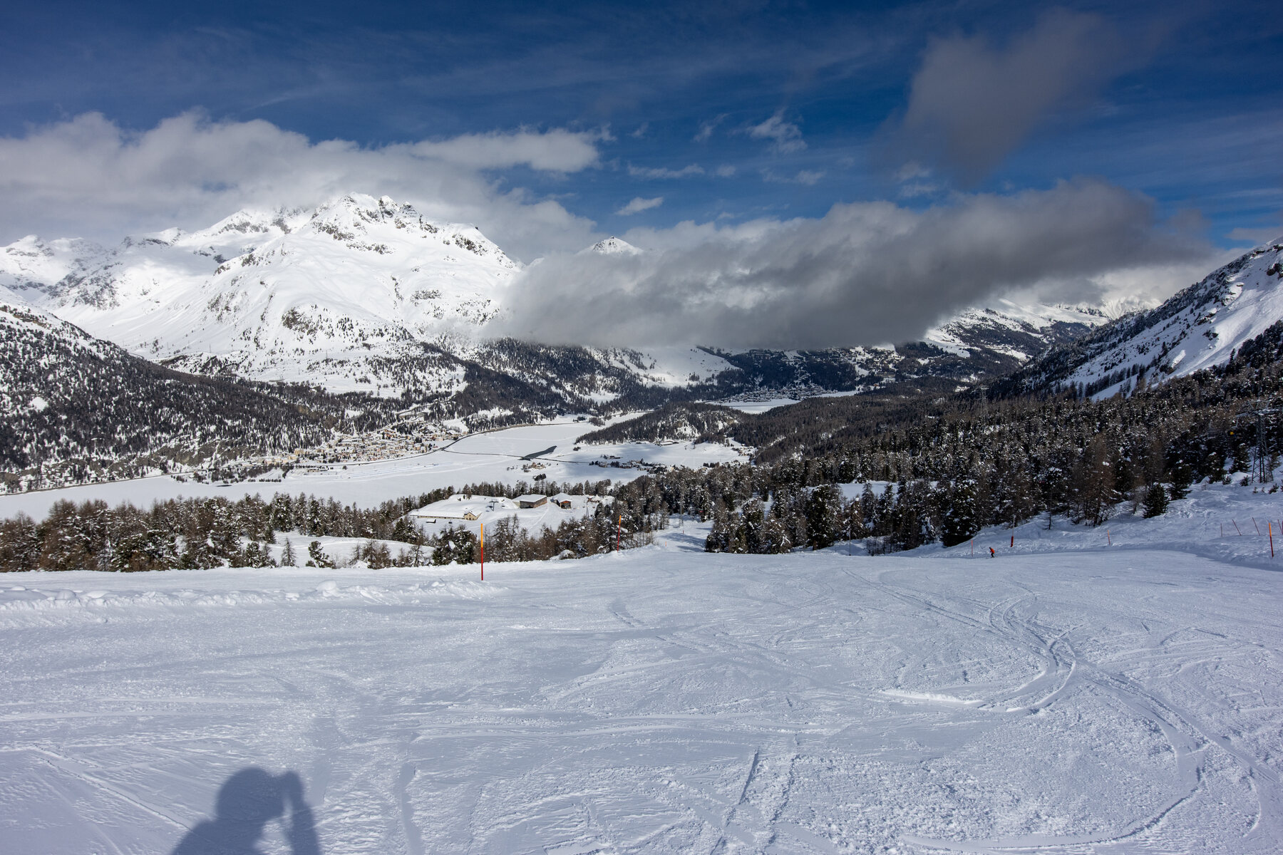 Blick Richtung Corviglia, hier gingen ganztägig immer wieder grössere Wolkenfelder.