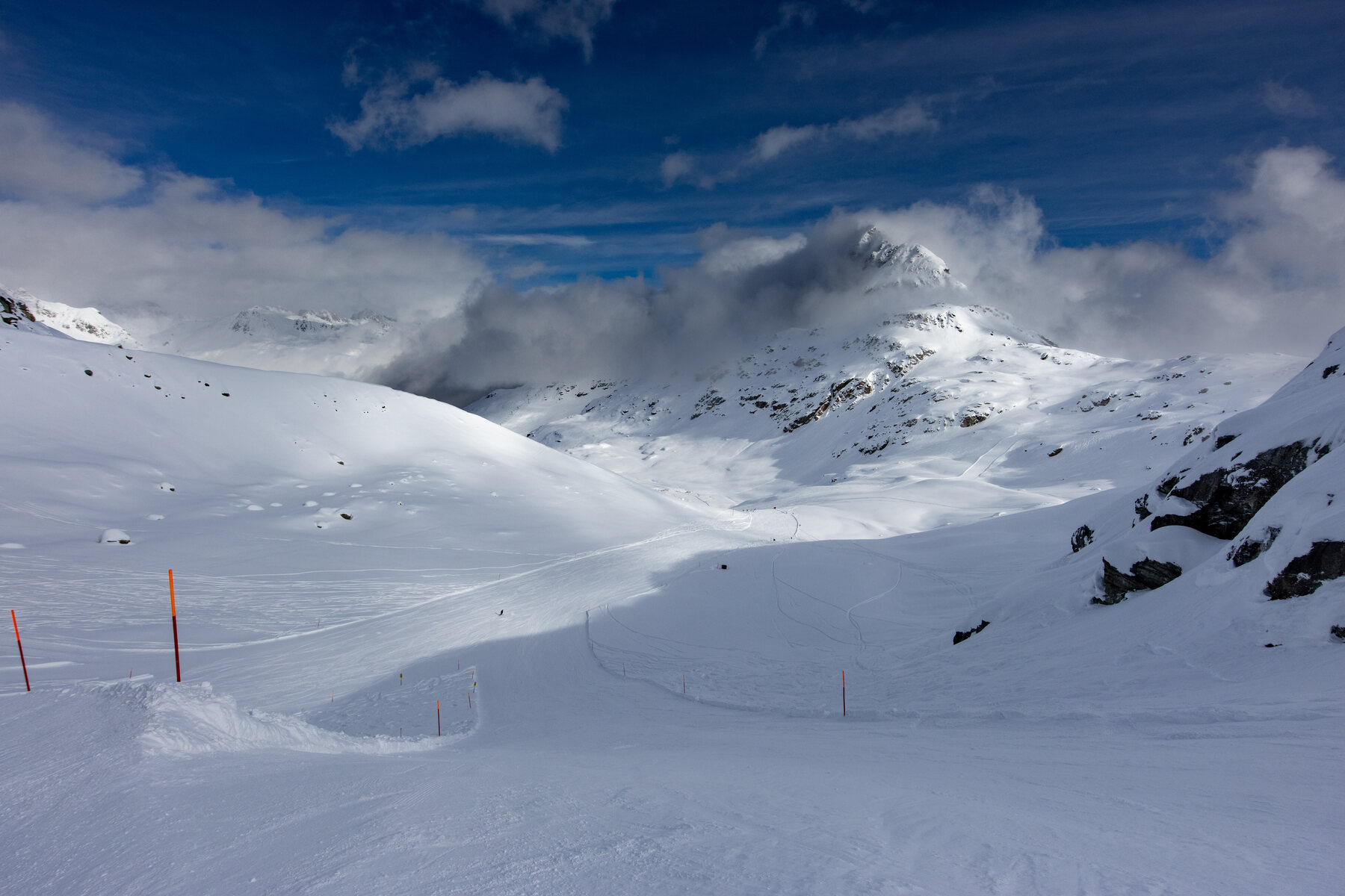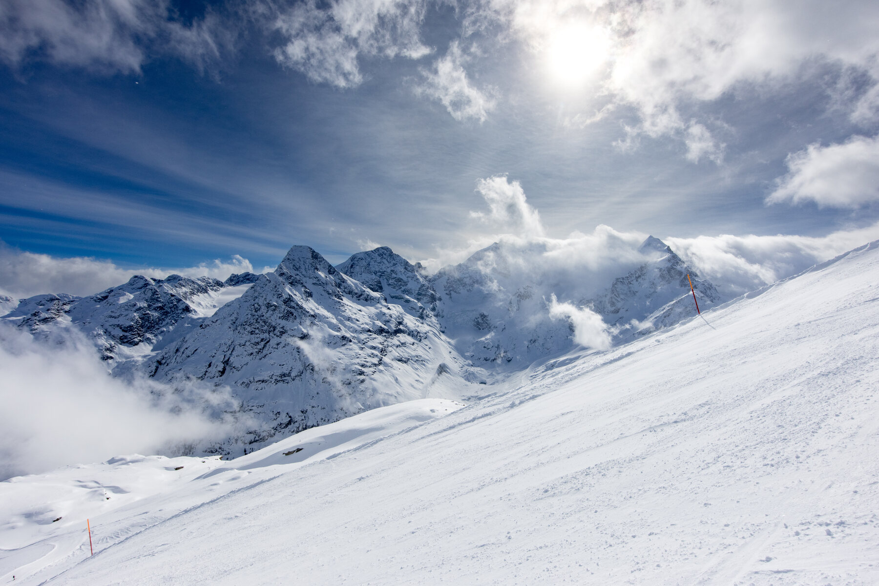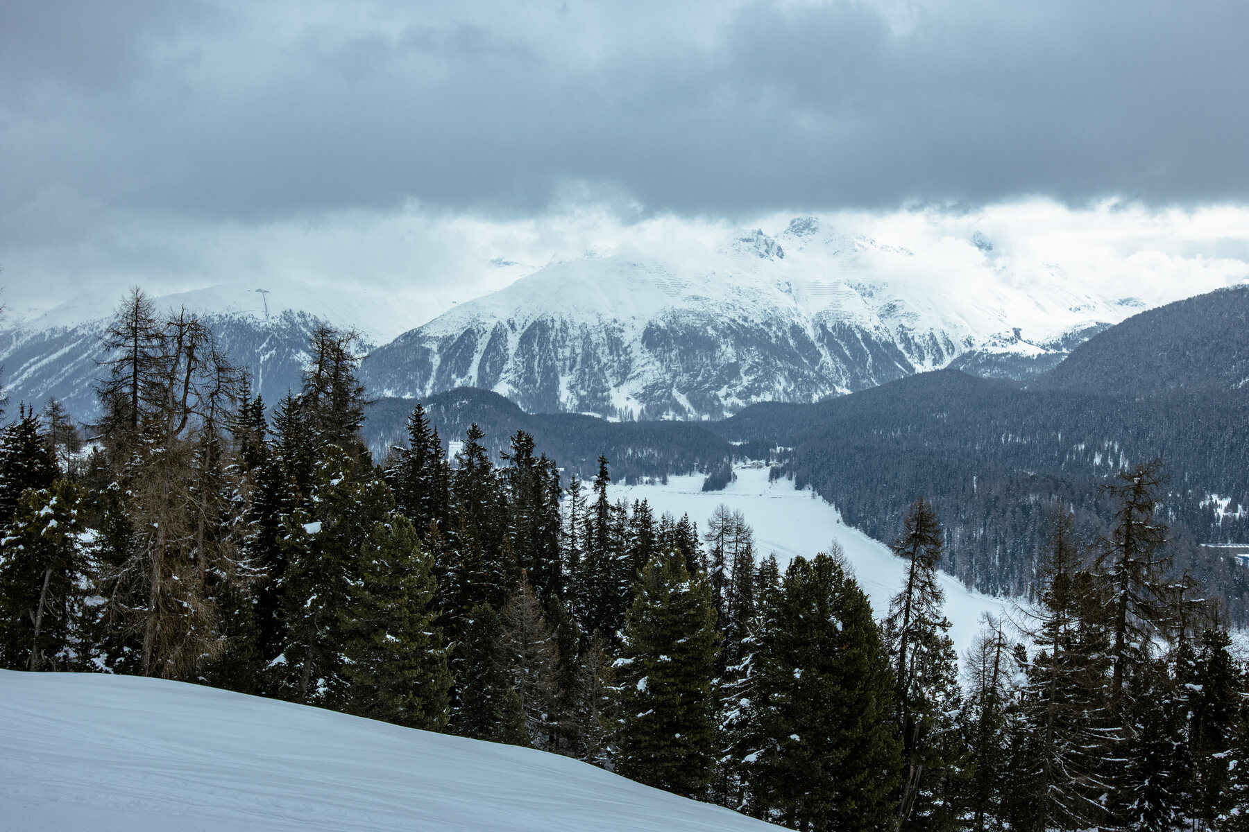 Blick Richtung Corviglia, hier gingen ganztägig immer wieder grössere Wolkenfelder.