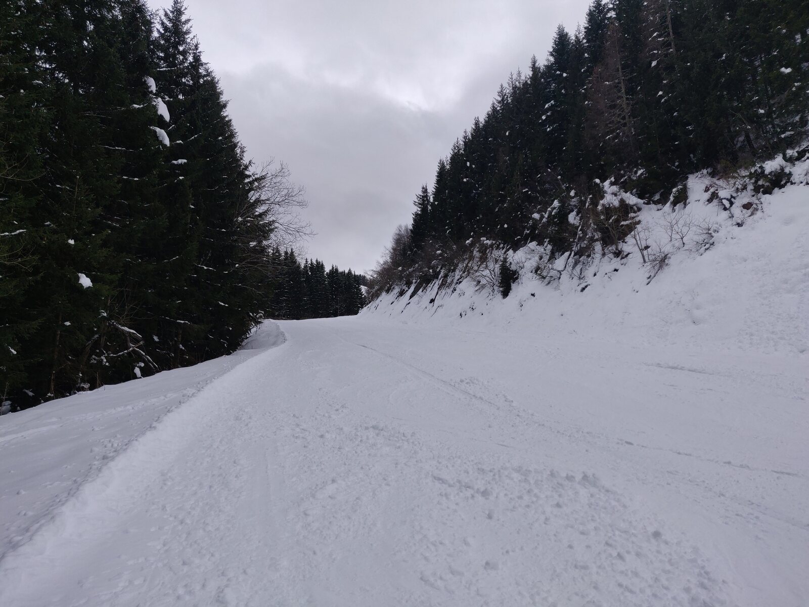 ^ Erster Blick auf die Talabfahrt. Sieht leider sehr schottrig aus 😢.