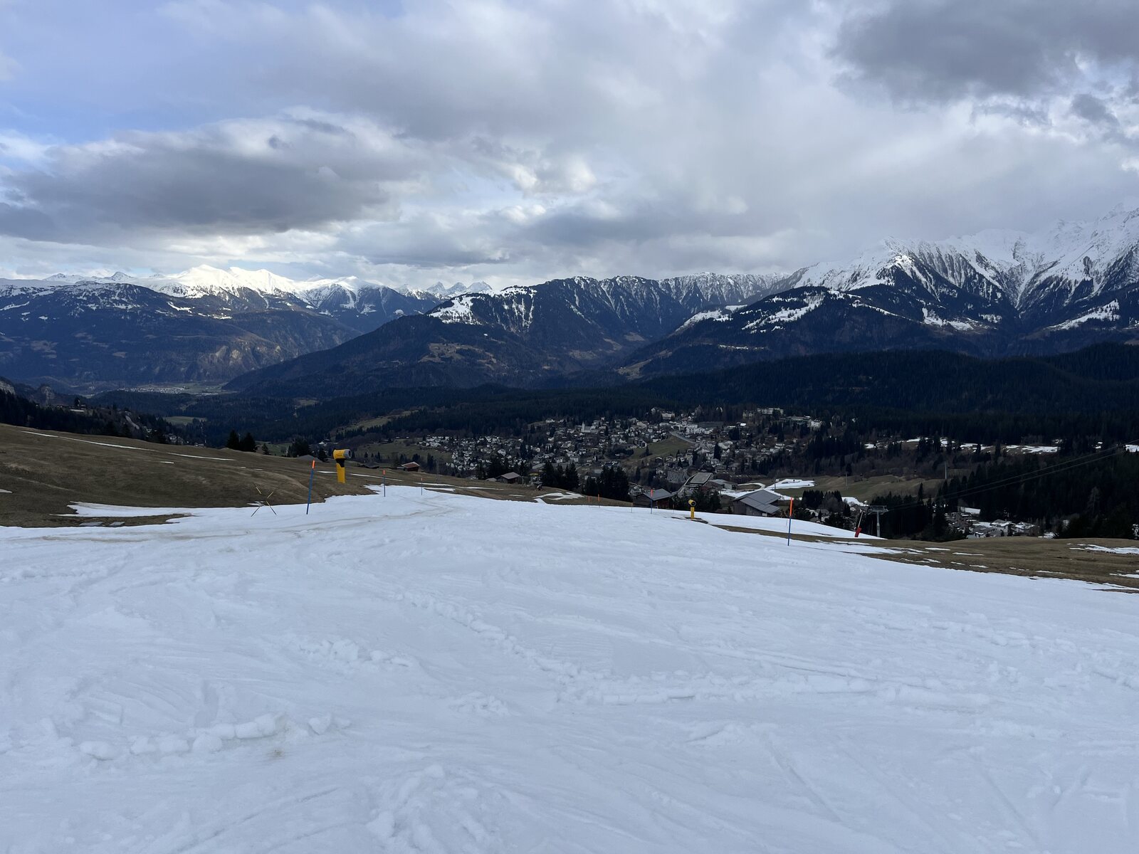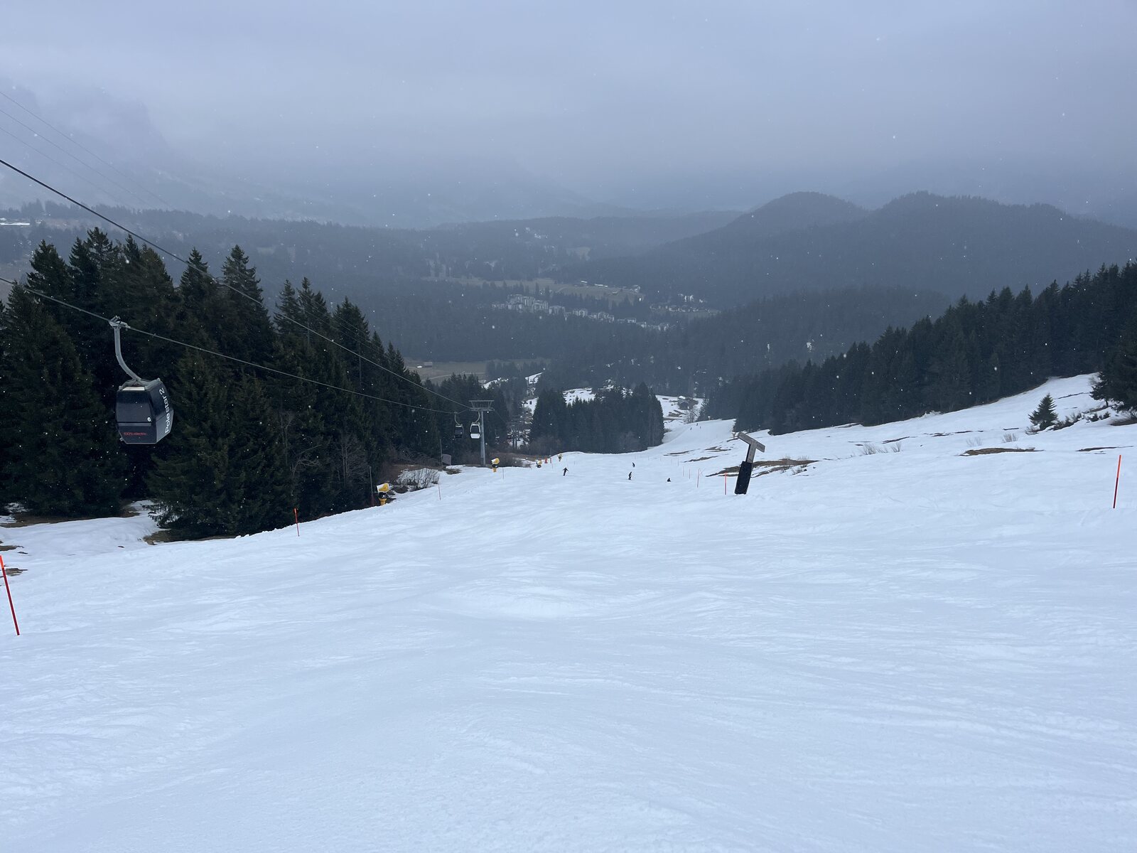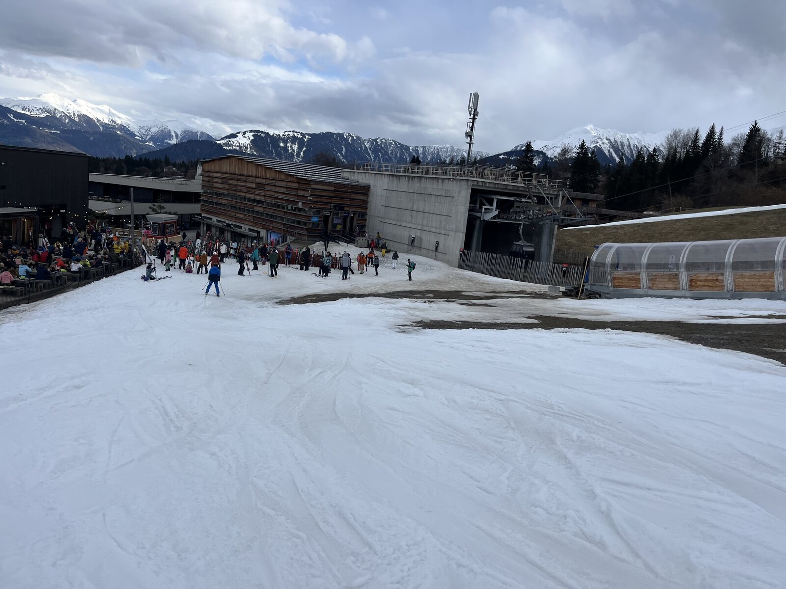 Der Flem-Express bietet neue Chancen: Die Talabfahrt mit dem Arenaexpress war mir nie sonderlich sympatisch. Bin aber schon mit dem Flem-Express abgegegondelt, weil die Talabfahrt dermassen ein Acker war. Irgendwann ist es einfach zuviel. Und die Fahrt ist ja landschaftlich durchaus reizvoll. Es ist einfach zu warm, da nützt auch Beschneiung nichts....