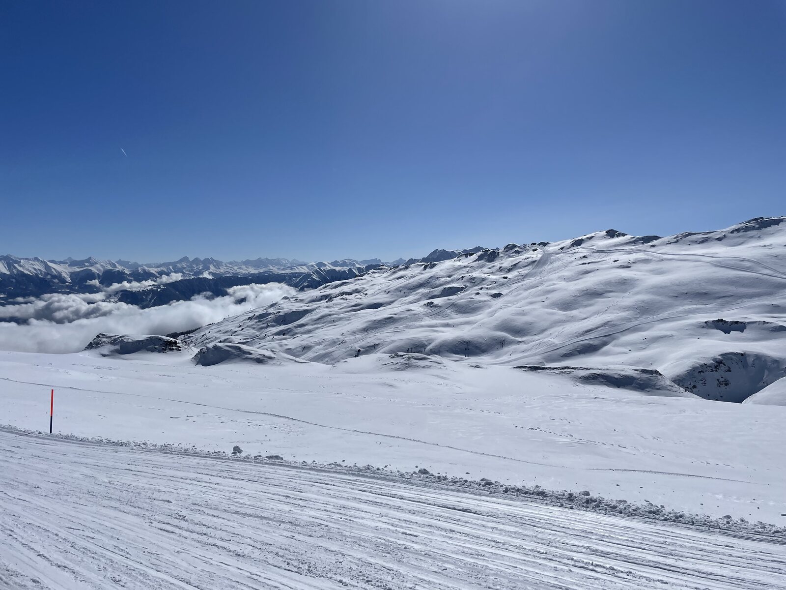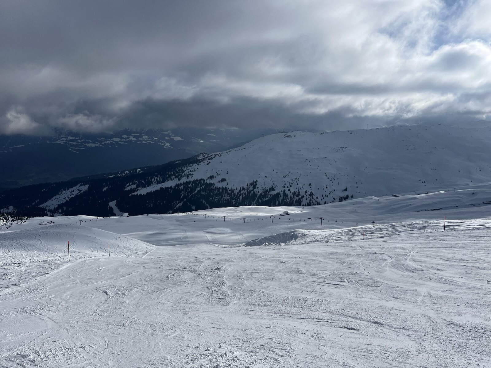 Wollte um 13:30 richtung Vorab aber habe mich aufgrund des Windes und weil La Siala geschlossen war mich dagegen entschieden. Wenn ich deinen Bericht lese, hätte ich heute mich im Sektor Nagens bei besseren Pisten gefunden.