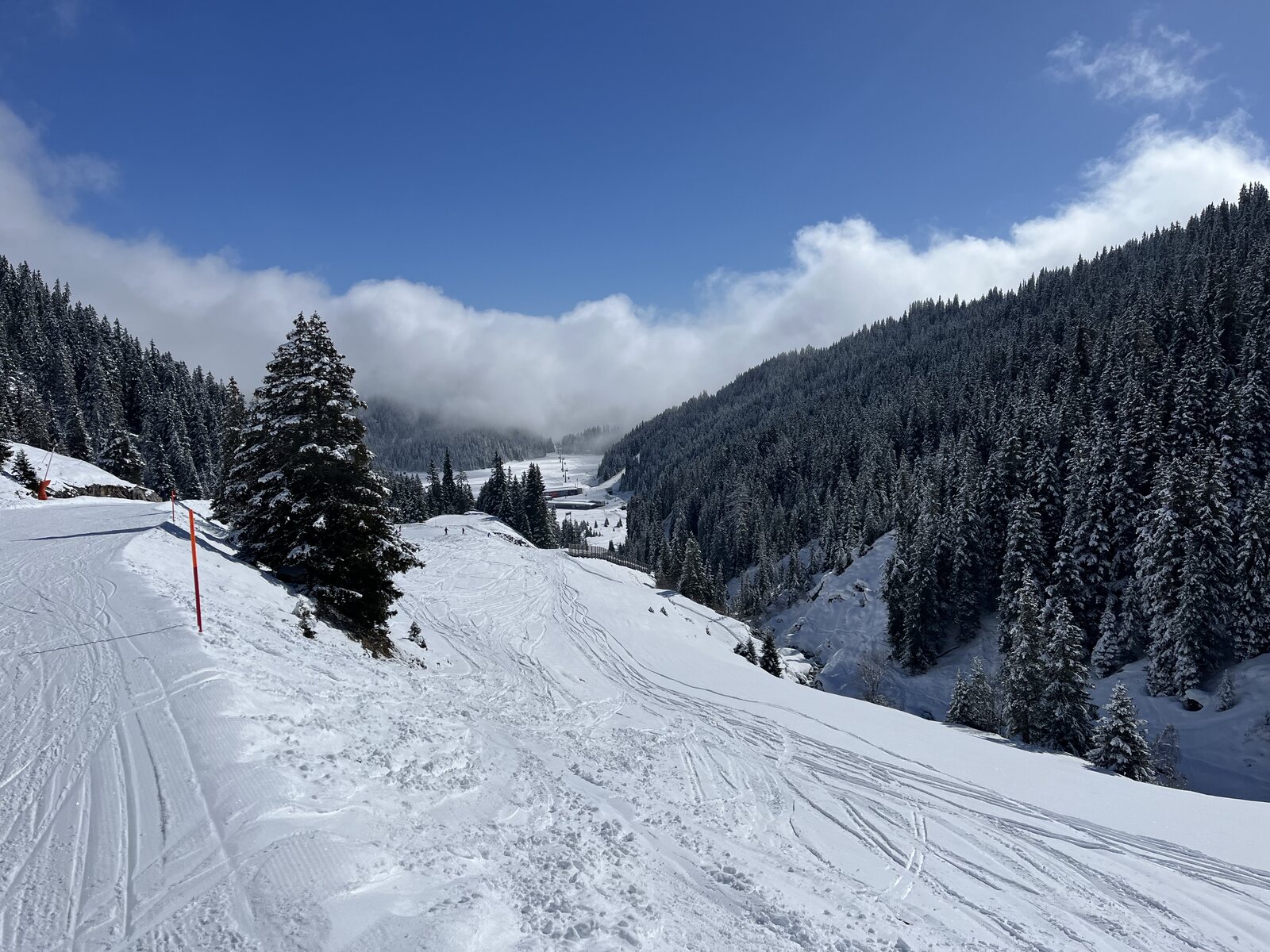 Pisten Pulver griffig und wie schon geschrieben nach dem Schneefall frisch präpariert Abseits der Pisten hat es alles ziemlich verblasen.