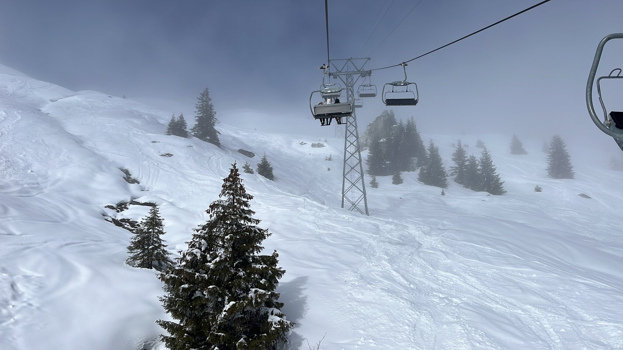 Dafür war Siala west bis am Schluss top. Beim Einstieg waren einige überfordert mit Wind, Nebel und Schneeansammlung. Wir hatten unseren Spass. Andere jedoch liefen wieder zurück zur Siala Bergstation. Eine beklagte sich wieso überhaupt noch geöffnet ist. Das sind dann genau die, die reklamieren wenn am Morgen wegen solchen Verhältnisse nicht geöffnet wird