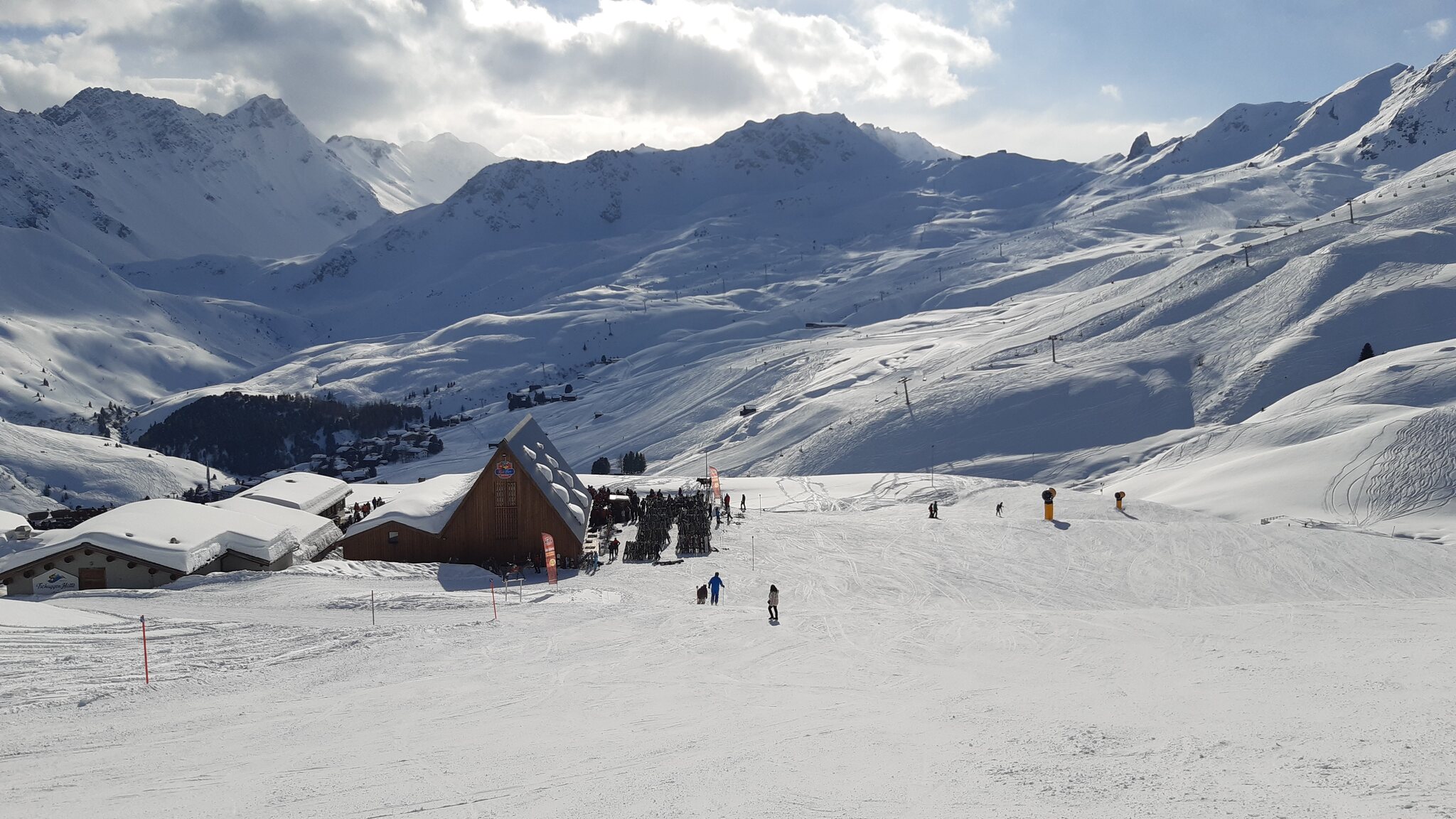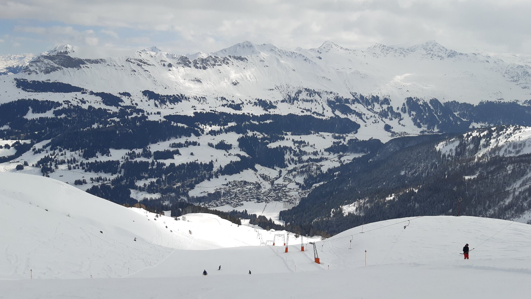 Der Andrang von gestern in Andermatt bestätigte sich auch heute. Der Andrang war aber dennoch deutlich angenehmer, da bessere Skifahrer unterwegs waren, als in Andermatt. Es war auch kaum Englisch oder Hochdeutsch zu hören, wie in Andermatt, sondern überwiegend Schweizerdeutsch und ein bisschen Hochdeutsch. Nennenswerte Wartezeiten gab es nur am Scalottas. Volle Pisten gab es - wie zu erwarten - am Lavoz-Sessel und rund um die Alp Stätz. Das ist aber ja nichts neues. Darauf kann man sich gut einstellen und die Gebiete so gut es eben geht meiden.
