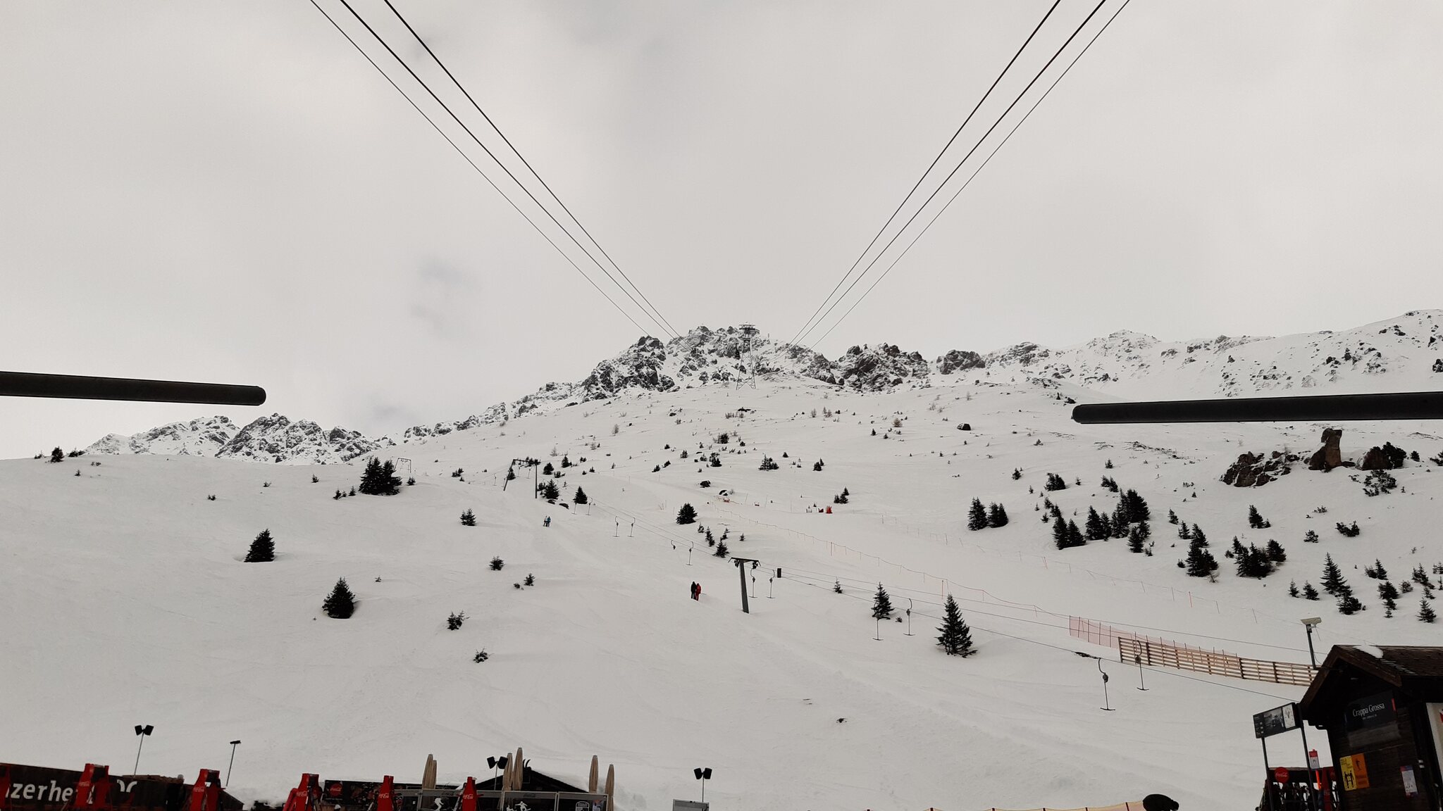 Da der untere Teil der roten Talabfahrt zum Pedra Grossa-Sessel durch Skirennen komplett belegt war, gab es einen provisorisch präparierten Querfeldeinweg zur hier gezeigten blauen Talabfahrt