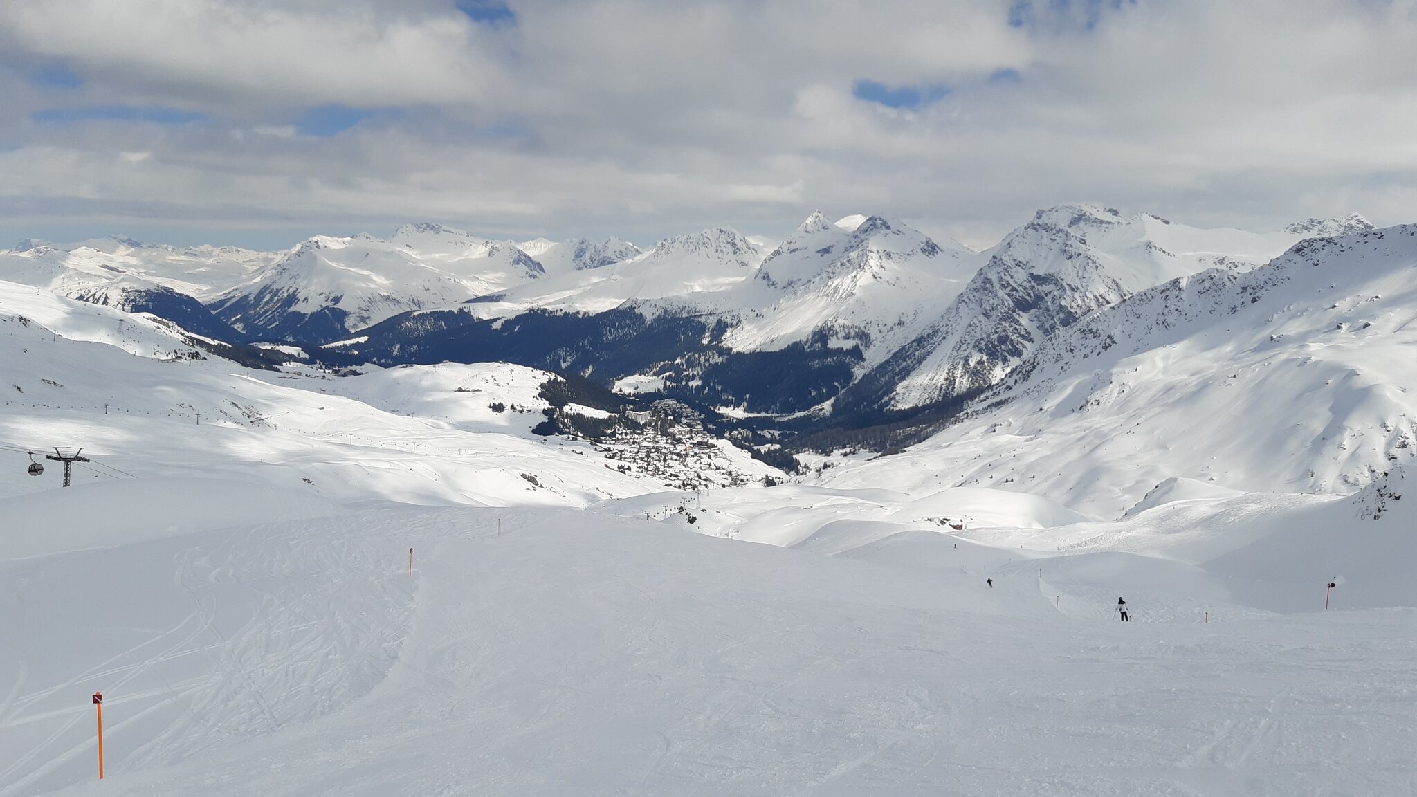 Blick aus dem Stätzerhorn-Sessel auf den perfekten Pistenteppich