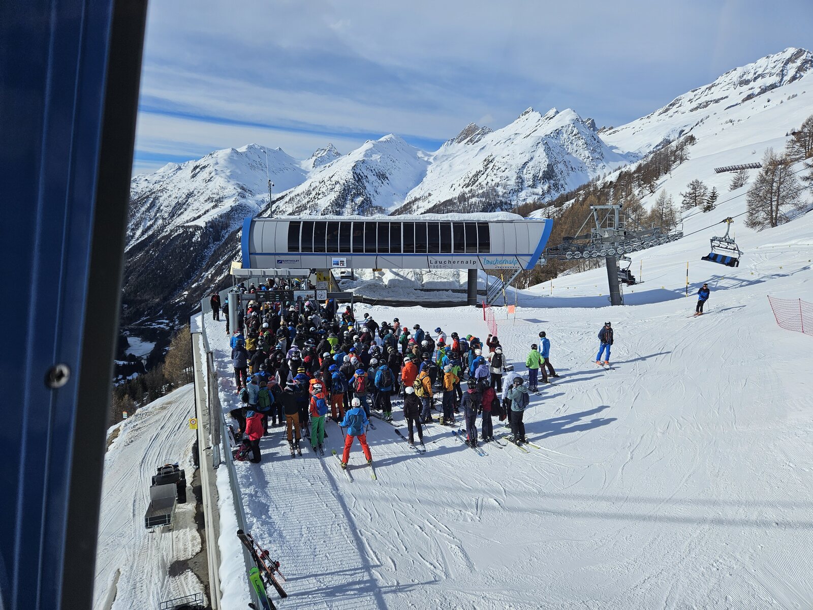 Es war viel los, aber es gab kaum Wartezeiten an den Anlagen (max. 5min in Gandegg, max. 10min in Holz-Stafel, max. 5min an der Gondelbahn).