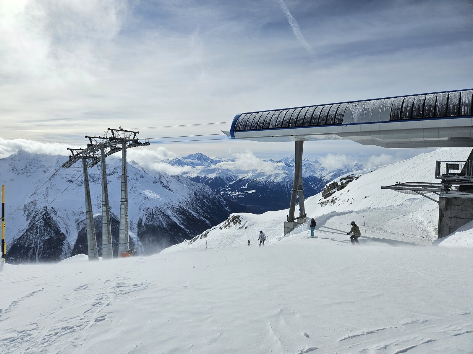 Am Vortag hatte es geschneit. Es gibt übrigens wirklich viel Schnee im gesamten Skigebiet. Alle Pisten waren offen (ausser der Talabfahrt) und frisch präpariert, auch die ehemalige schwarze Piste Nr. 7.