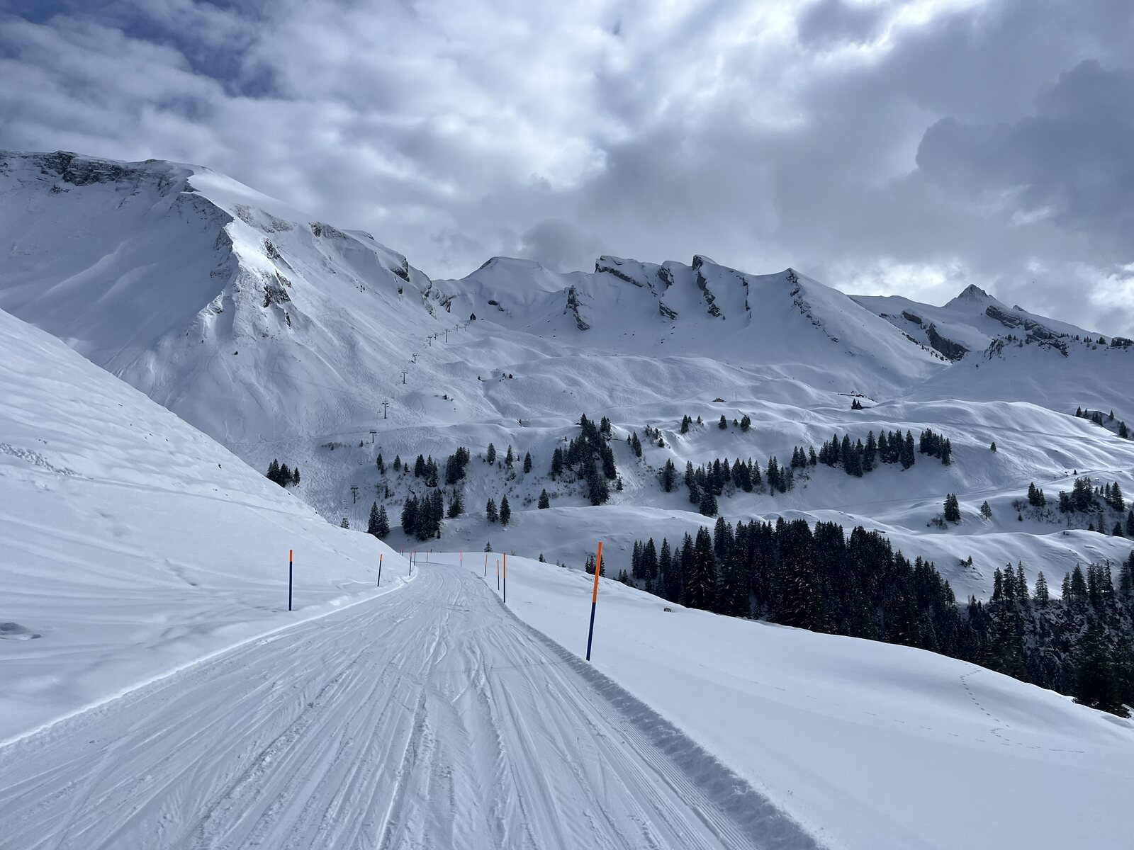 Der Föhn hat gewütet, auf dem Twäregg-Trassee bremst es: Die Piste ist aber oben noch sehr gut. Unten weniger, aber das würde schon noch ein paar Tage gehen. Sie sollten mal nach Winterberg schauen…