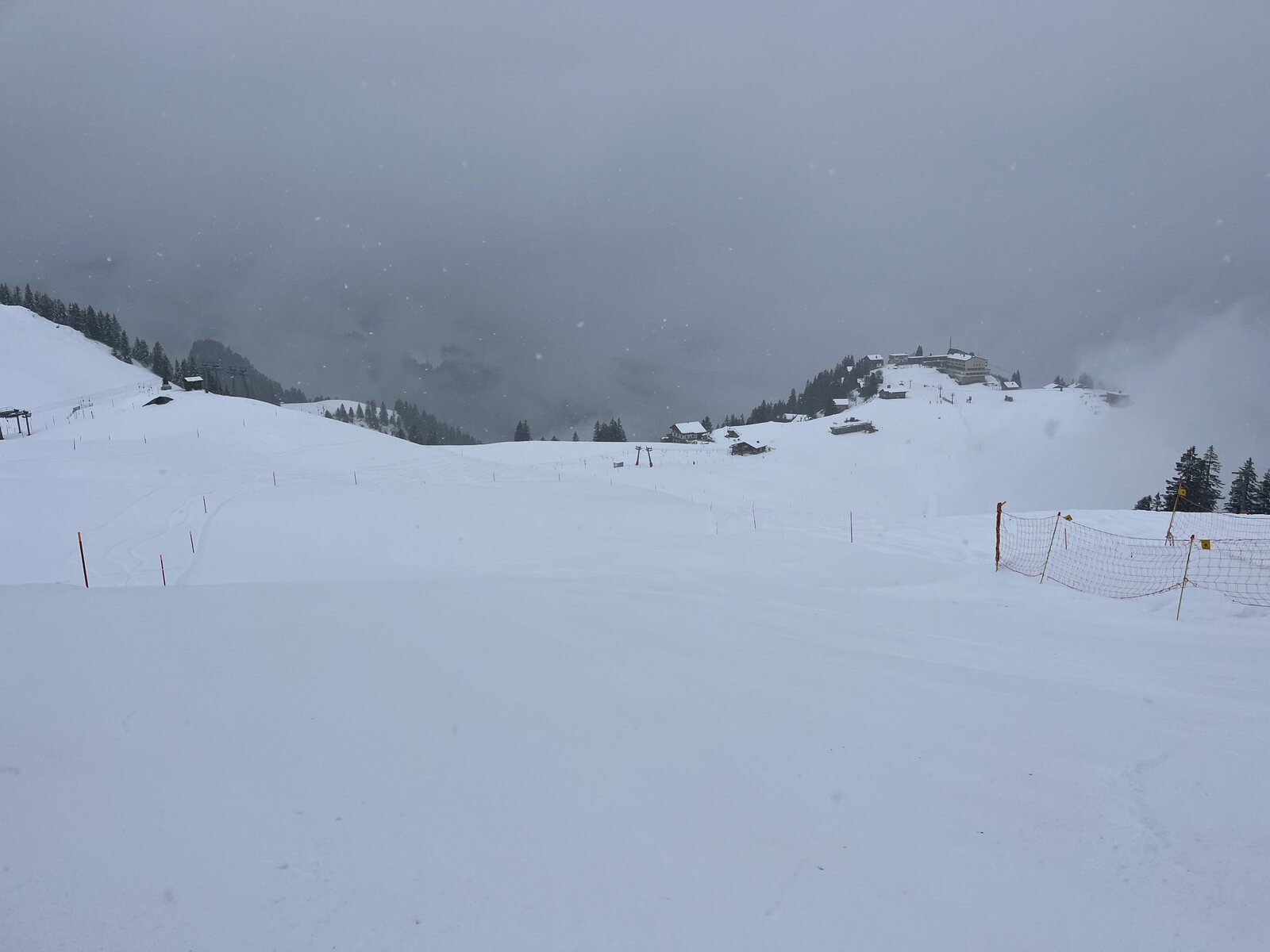 Gut. Zum einen wäre es auch ohne Schneefall mit ein paar braunen Flecken, notfalls mit nur teilweiser Präparierung, gegangen. Zum anderen schneit es aktuell bis knapp oberhalb Emmetten recht intensiv.Information