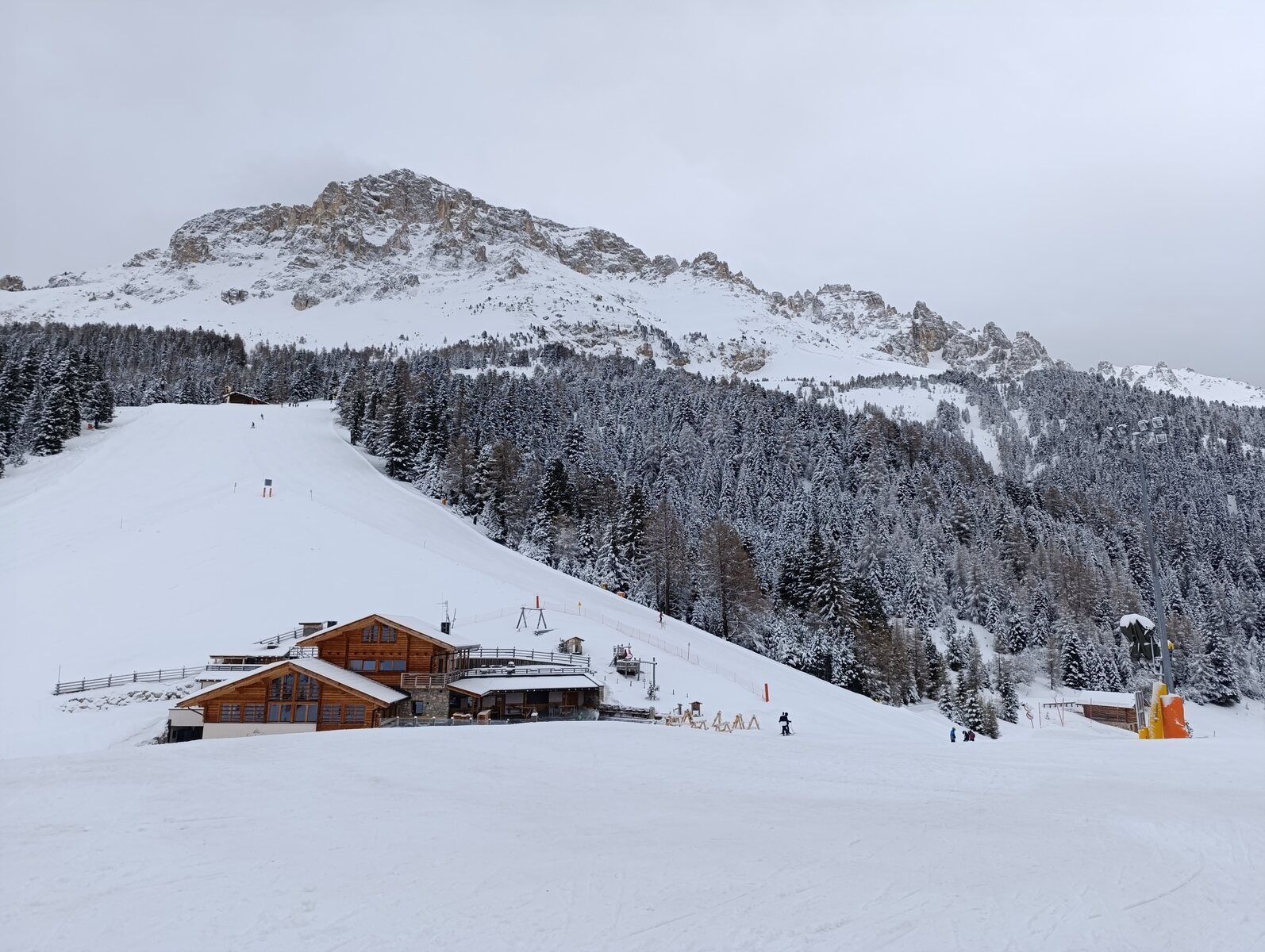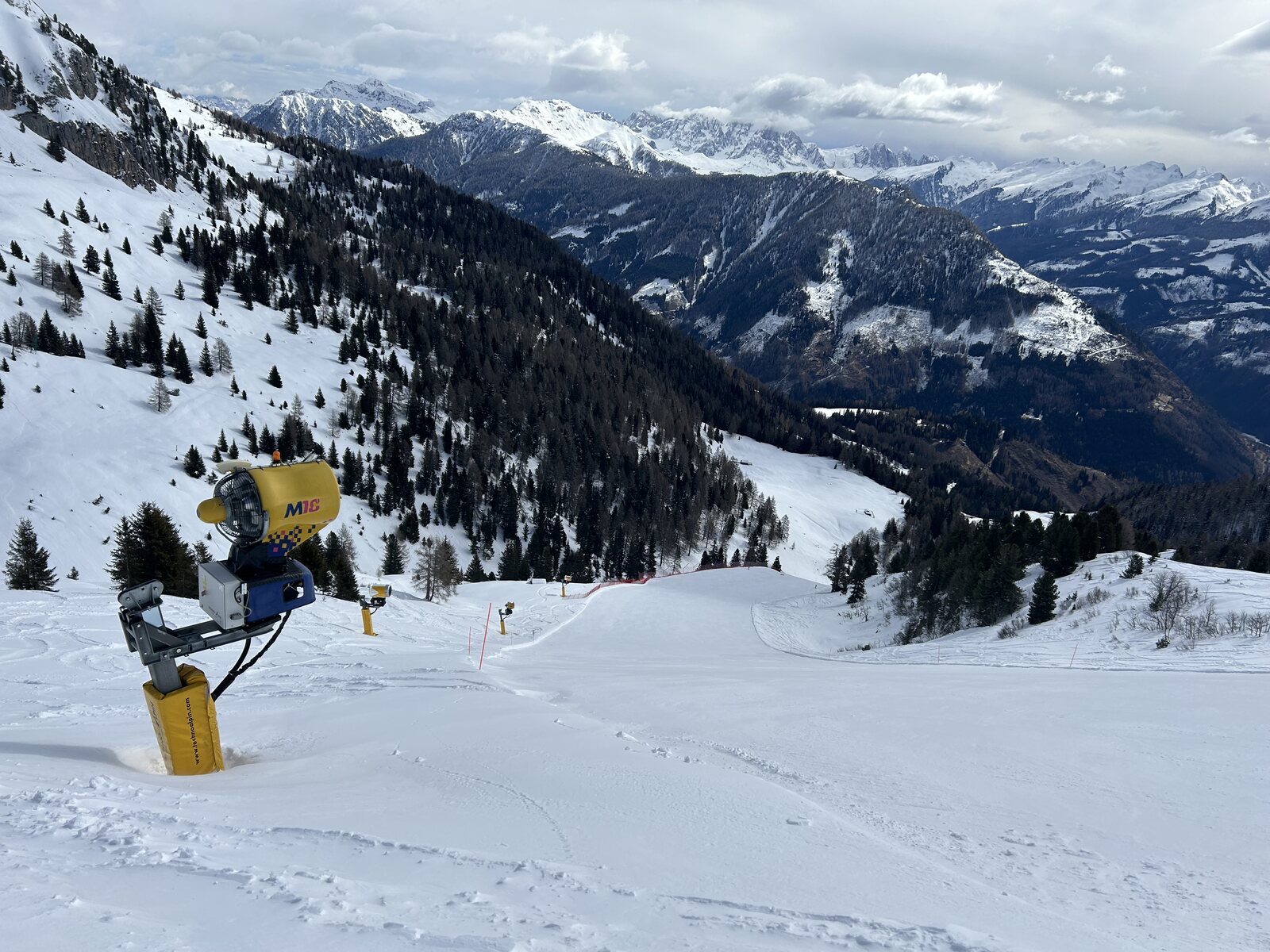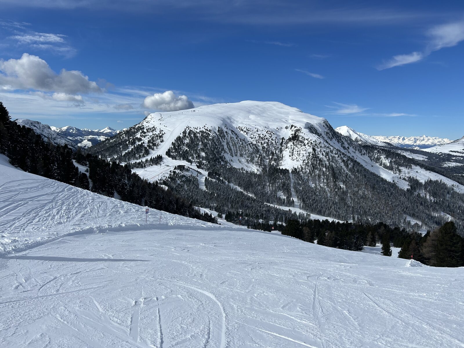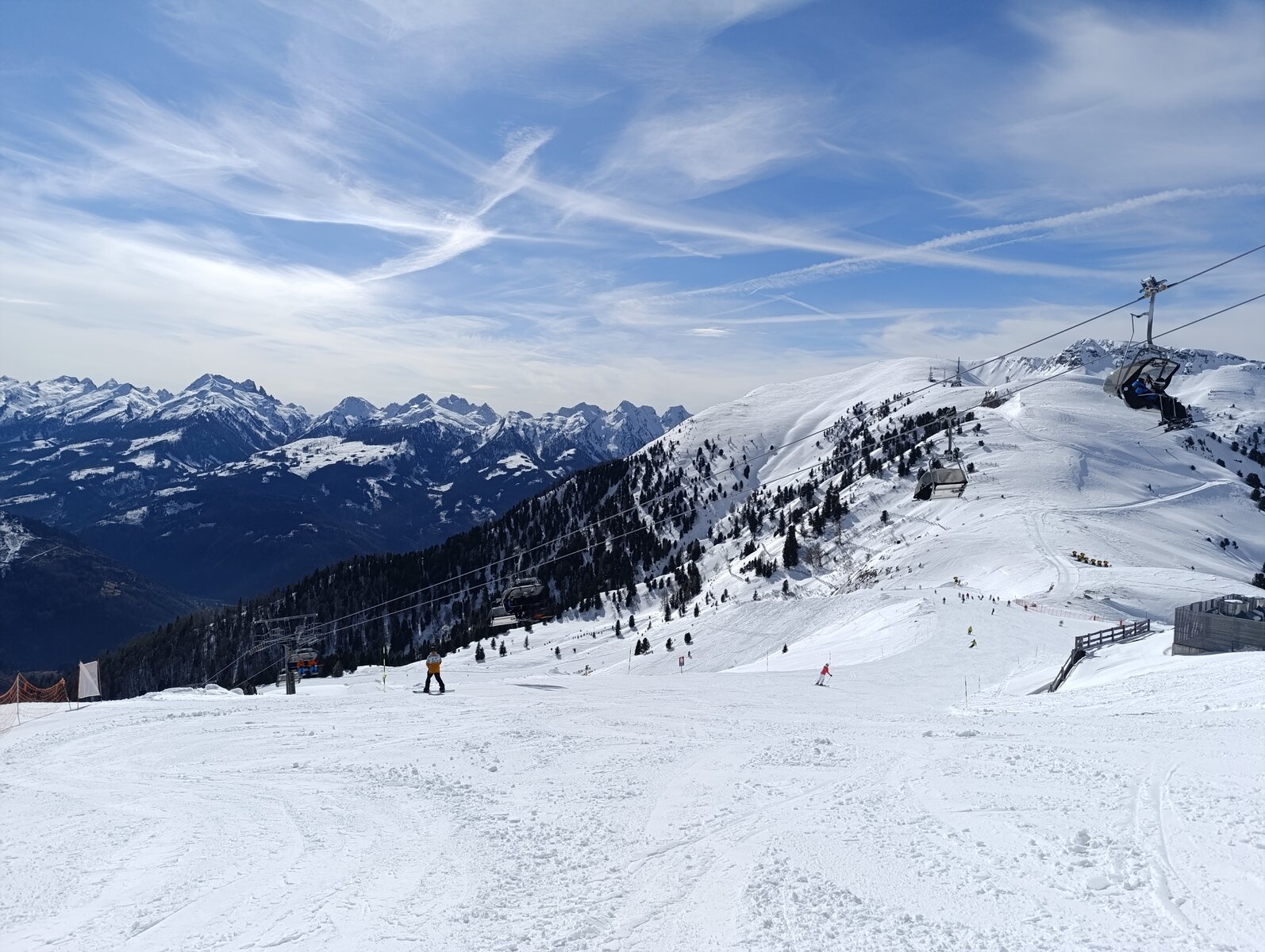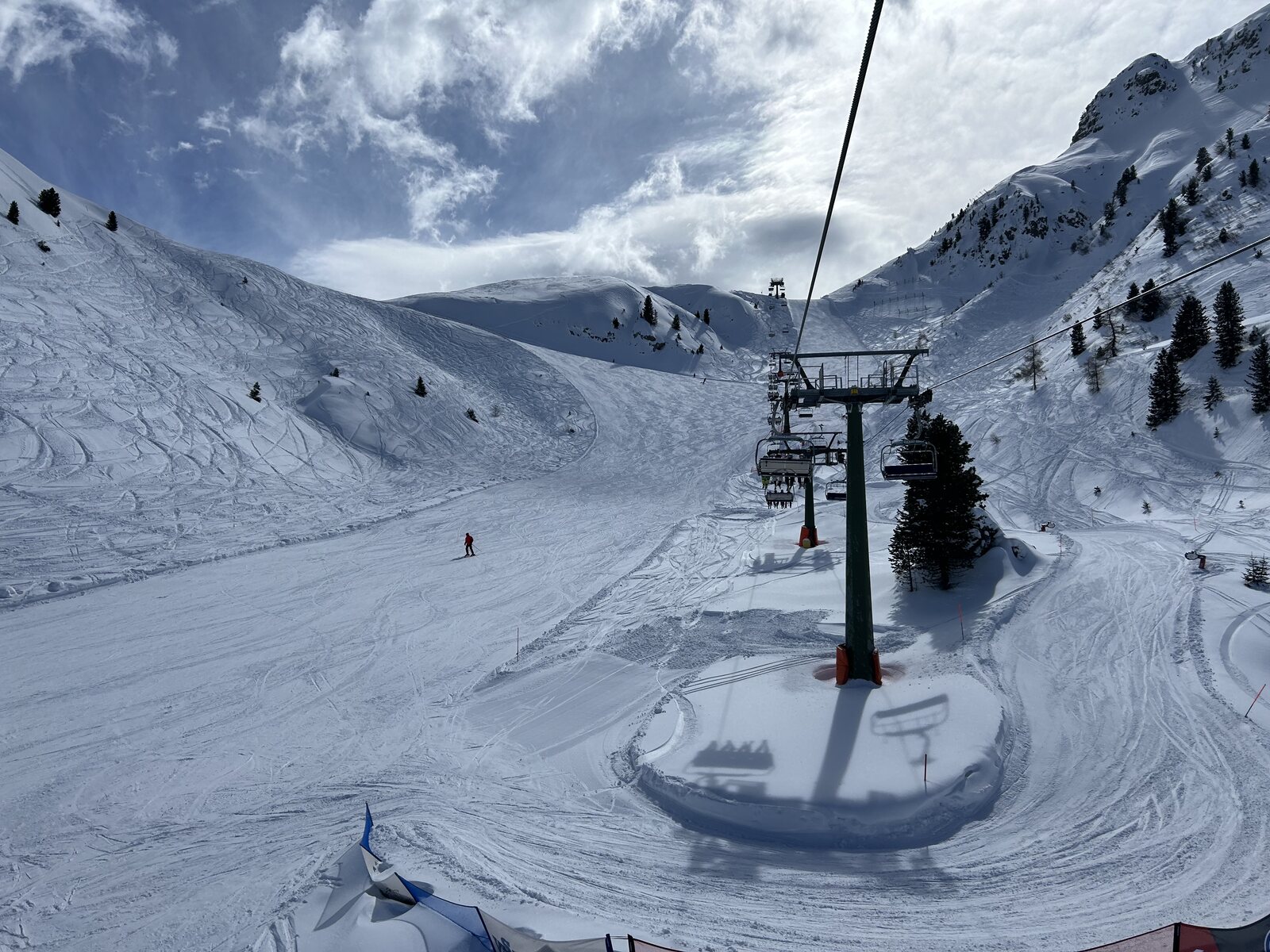 Schnee lässt sich super fahren bisher, weniger Leute als auf der Sella. Macht Spaß! Zurück auf der Piste