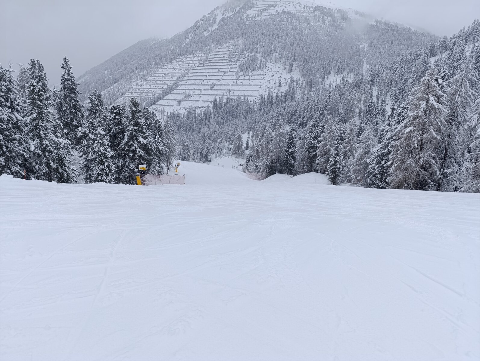 Stäntn hat es im Ronda-Thread schon beschrieben.... dasselbe ist auch gültig für Latemar. Unten 15, oben 30 cm Neuschnee. Der Neuschnee konnte erwartungsgemäss nicht kompakt hergerichtet werden und so war es am Morgen schon (zu) weich und bald bildeten sich die Haufen. Es hat trotzdem Spass gemacht. Das ganze Skiegebiet ist im Schnee versunken, oben hat es so viel wie den ganzen Winter nicht.