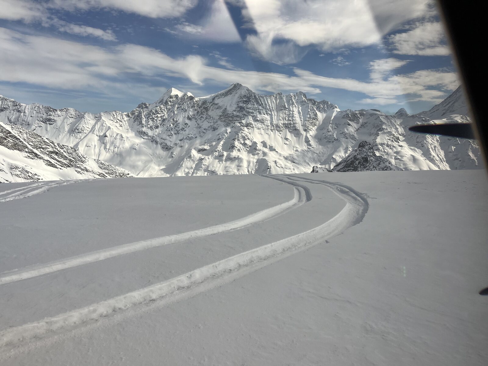 Frischer Neuschnee, blauer Himmel, kaum Wind. Was will man mehr. Mit dem heutigen Passagier ging es auf den Hüfifirn (Ost & West), den Limmern, den Vorab und den Glärnisch. Komischerweise war überhaupt nichts los, sodass ich überall frisch anspuren musste / durfte. Am Hüfi West gesellte sich dann doch noch kurz ein anderes Flugzeug zu uns.