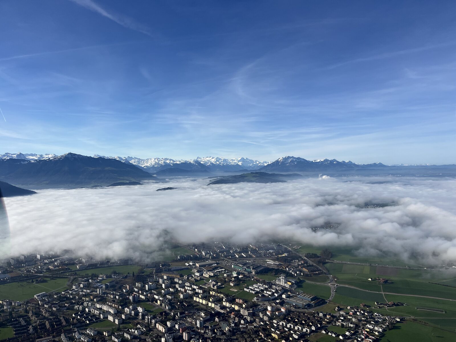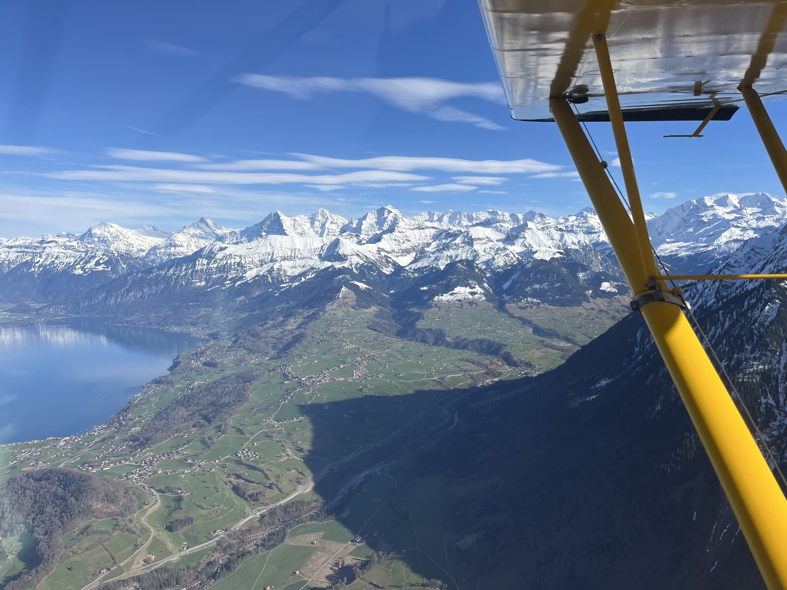 Das Flugzeug wurde heute unerwartet frei und weil ich ski-chrigel junior versprochen hatte, ihn jeweils einmal pro Saison mitzunehmen, haben wir dies spontan genutzt. Allerdings war ich heute früh unsicher, wie schnell sich die Wolkenfelder ausbreiten und somit den Kontrast beeinträchtigen würden. Doch die Meteorologen irrten, sie kamen nicht, im Gegenteil, es wurde immer schöner.