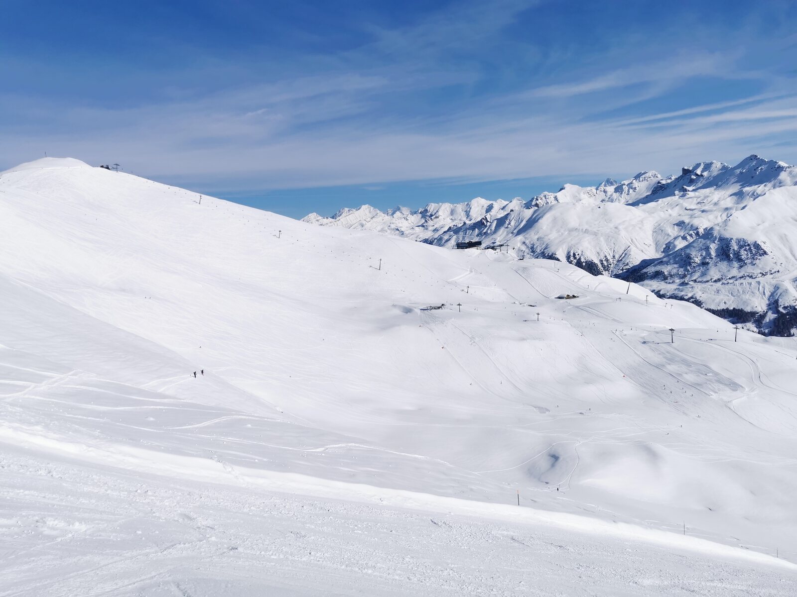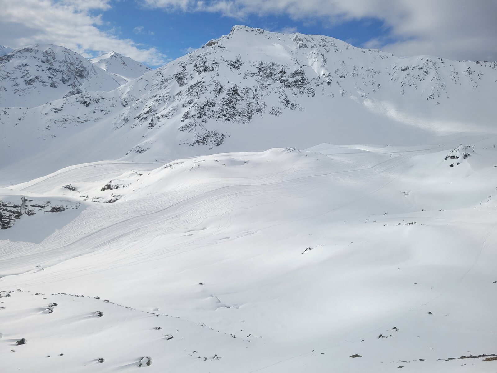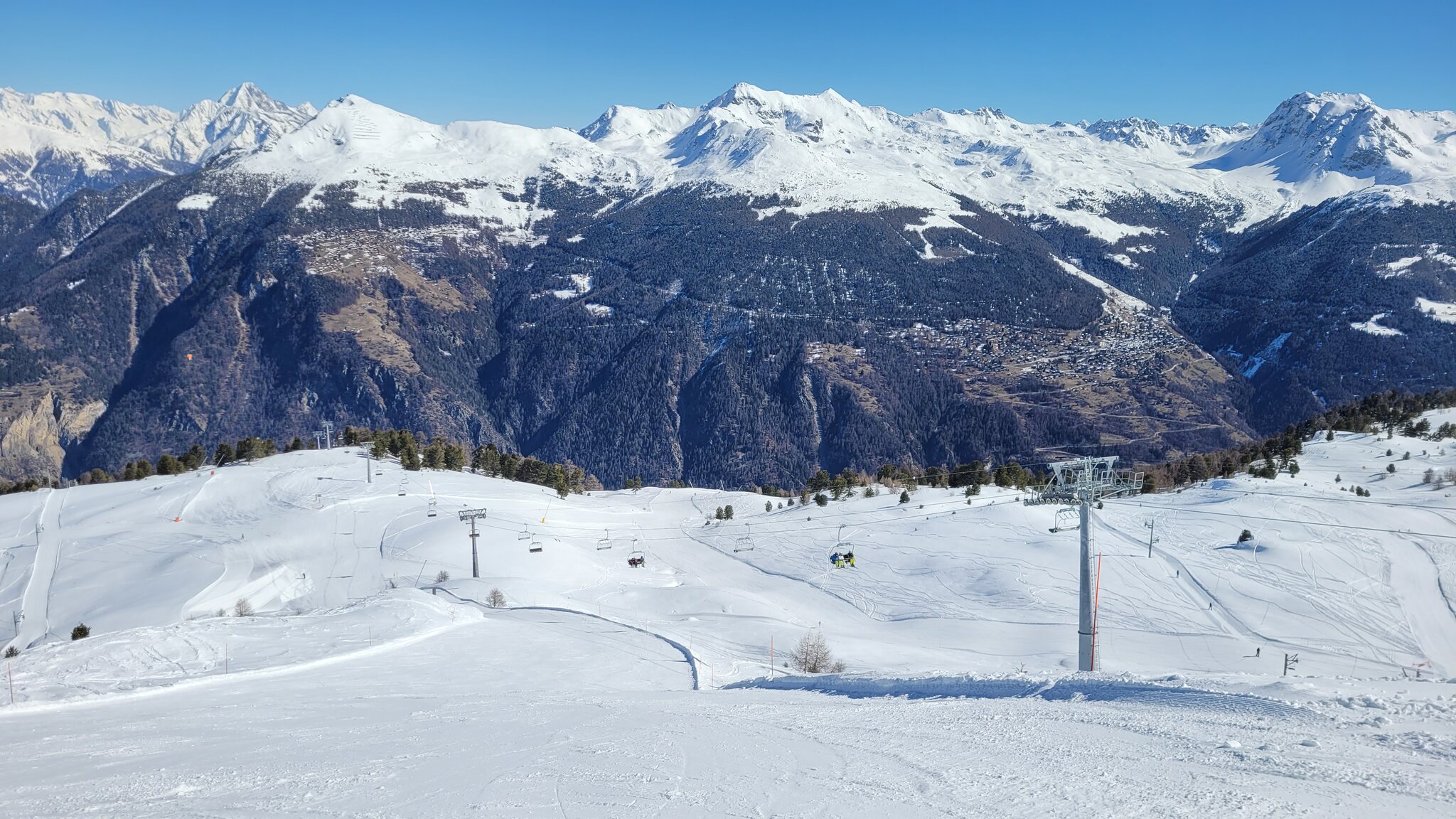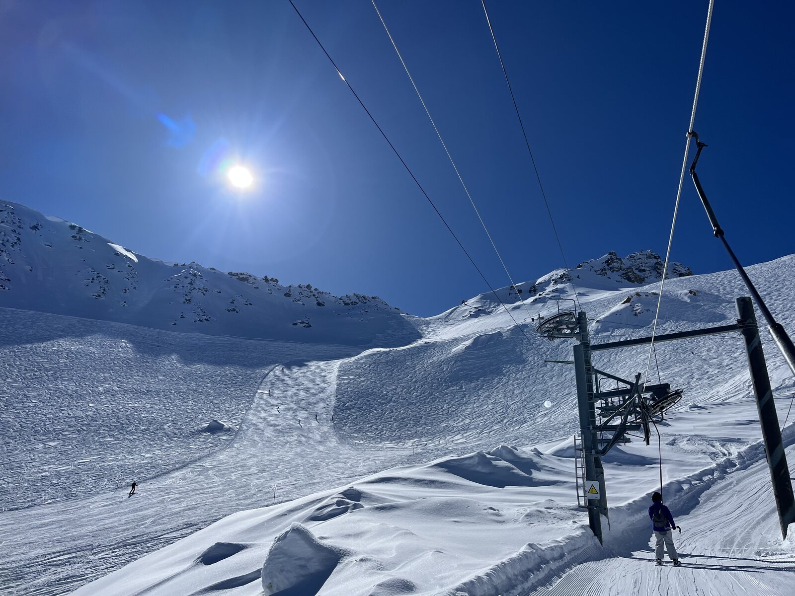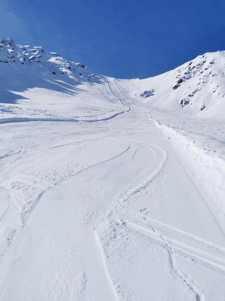 Die ersten Abfahrten auf unverspurten Lona und Tsa waren herausragend. Dann ging es mit dem Lona 2 Schlepper ganz hoch, endlich mal die Lona inférieure Talabfahrt angehen. Die habe ich bisher immer links liegen gelassen weil Pistenzugang nicht gefunden.