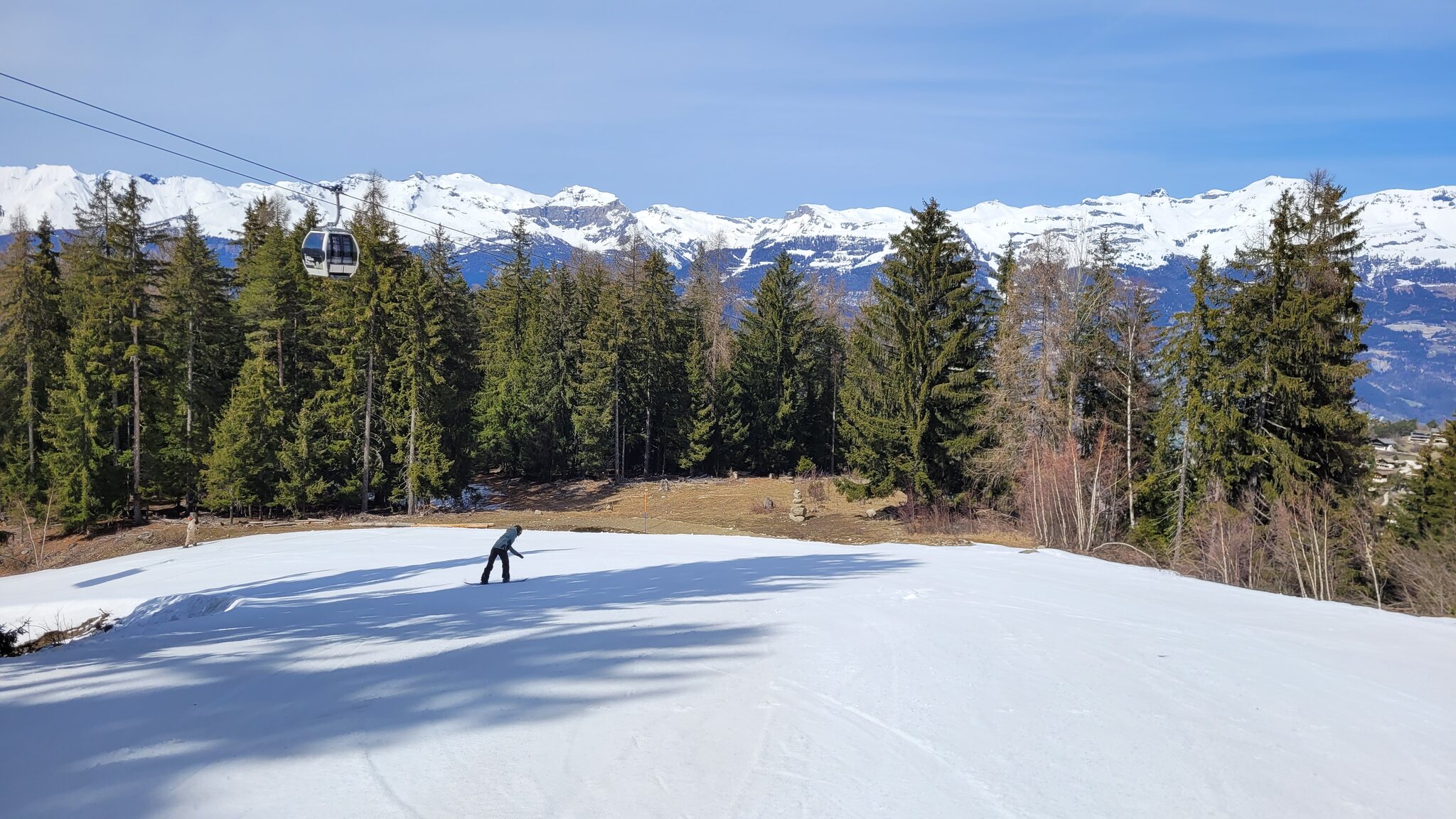 Kurzes Update von mir, ich war wieder mal auf meiner Mittagsrunde in Vercorin. Bei dem Kaiserwetter heute ein Pflichtprogramm, Temperatur war mit -2°C auch optimal. Oben sind die Bedingungen wirklich noch sehr gut, die schwarze Tracui-Abfahrt war ein Traum. Unterhalb von Sigeroulaz war die Schneekonsistenz etwas sandig, aber gut zu fahren bis zur Strassenquerung. Nur das letzte Stück war ziemlich trashig, dort habe ich meinem Material zu liebe abgezogen. Vielleicht müsste man dort mal einfach ein Laufband hinbauen anstatt den Pistenkadaver künstlich am Leben zu halten.