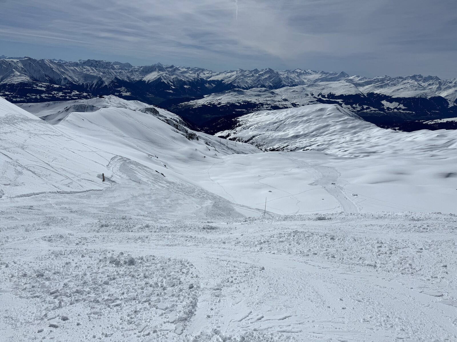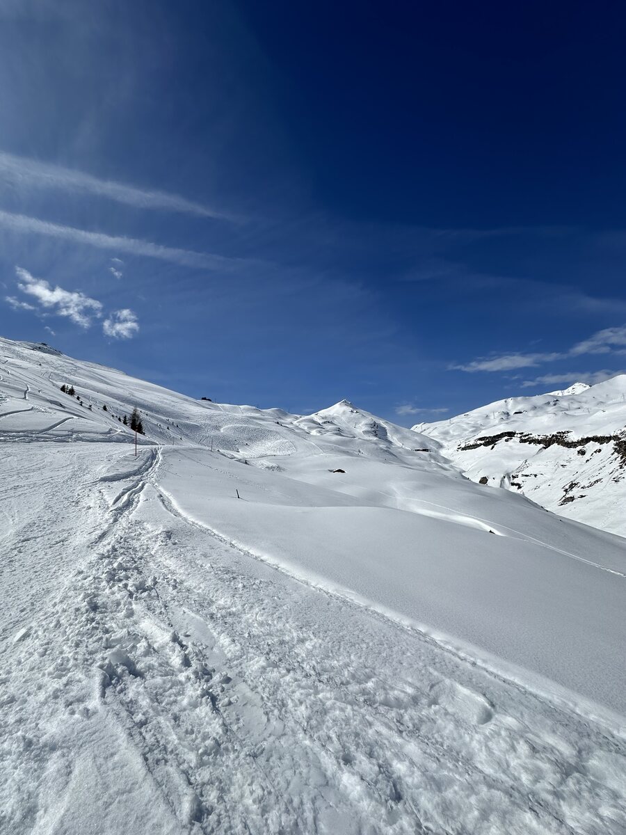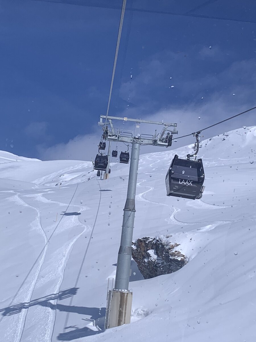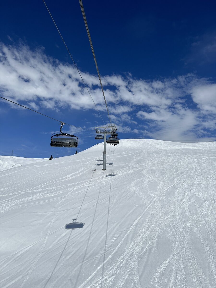 Nach unserem genialen Montag vor einer Woche war das heute nicht optimal. Viel Neuschnee ab ca. 2200m und ziemlich warm. Die Pisten meist sehr weich und haufig bis schwer. Siala Ost, Masegn und Vorab noch z.T. Pulvrig. Tiefschnee nun schwer möglich, da schwer oder ganz oben vereist. Dafür das Wetter super, kaum Leute und der Lunch auf Masegn vorzüglich. Auf den Sattel haben wir verzichtet, da schon zu spät. Vielleicht ist es morgen besser? Wenn meine Frau sogar meint, ob wir inzwischen zu alt sind? Beide nudelfertig. Immerhin hat der Klemm Express nur 15 Minuten runter gebraucht. Ohne Bremser zwischendrin. Hatte ich auch noch nie.
