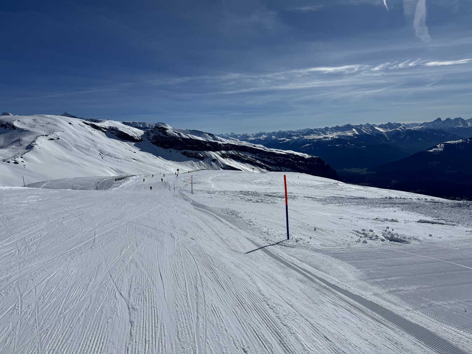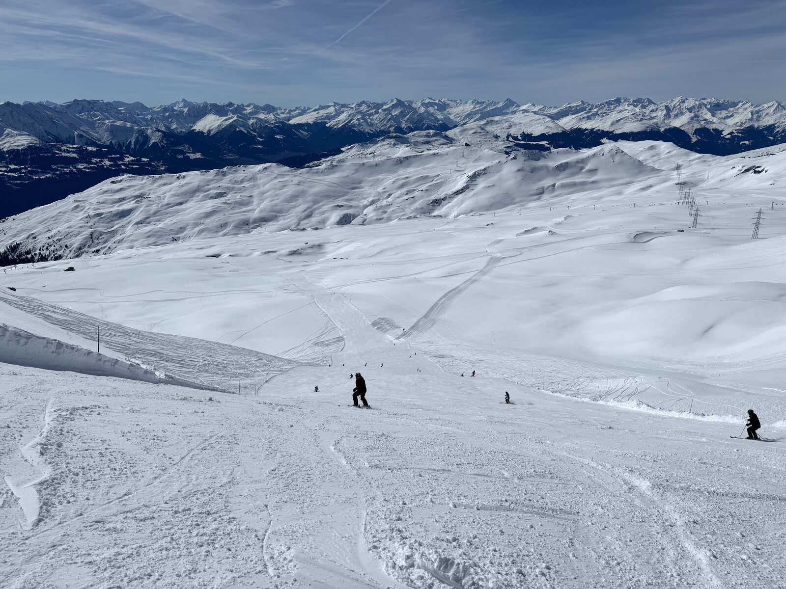 Heute irre! Beste Fahrt Siala-Fuorcla ever. Um Mutta etwas rumplig. Auf zum Sattel! Sattel eso ders oben super, Masegn-Plaun genial, ebenso Grauberg-Flims. Also küre ich heute den besten Pistentag. Und das bei angesagten 20 Grad im Tal.
