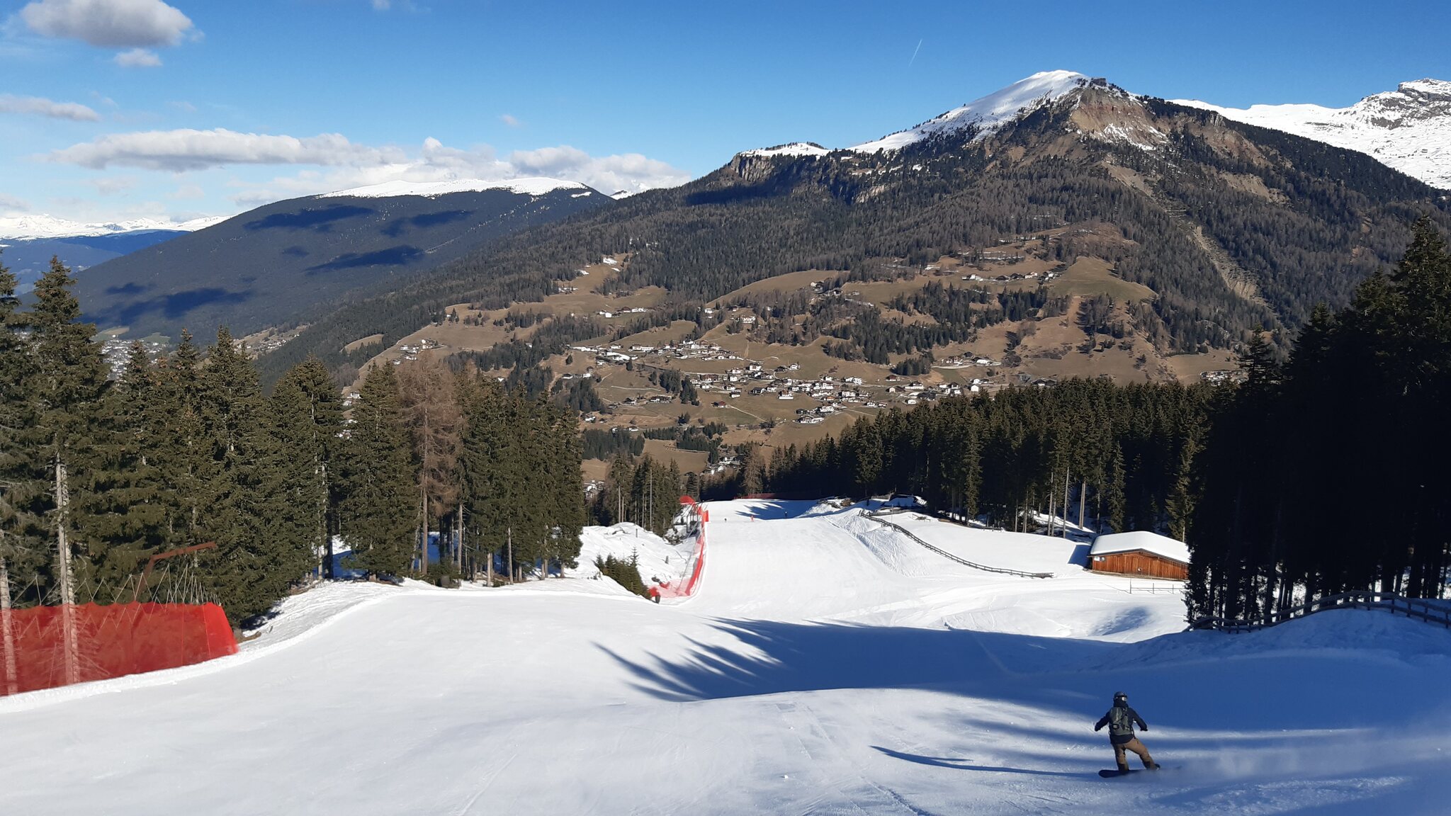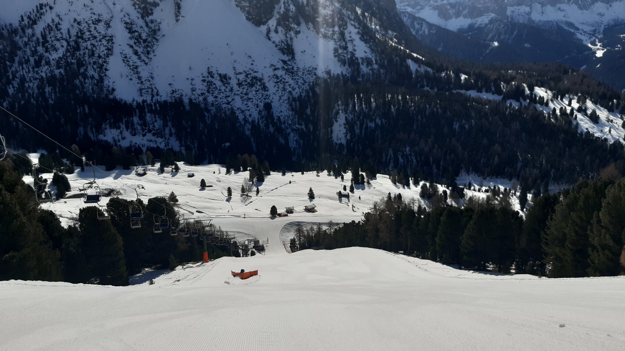 Pistenstart der Pilat, die wieder hinab nach St. Ulrich führt. Die Abfahrt gefällt mir an sich gut, auch wenn man merkt, dass man den Berg schon arg "überreden" musste, hier eine Abfahrt zuzulassen