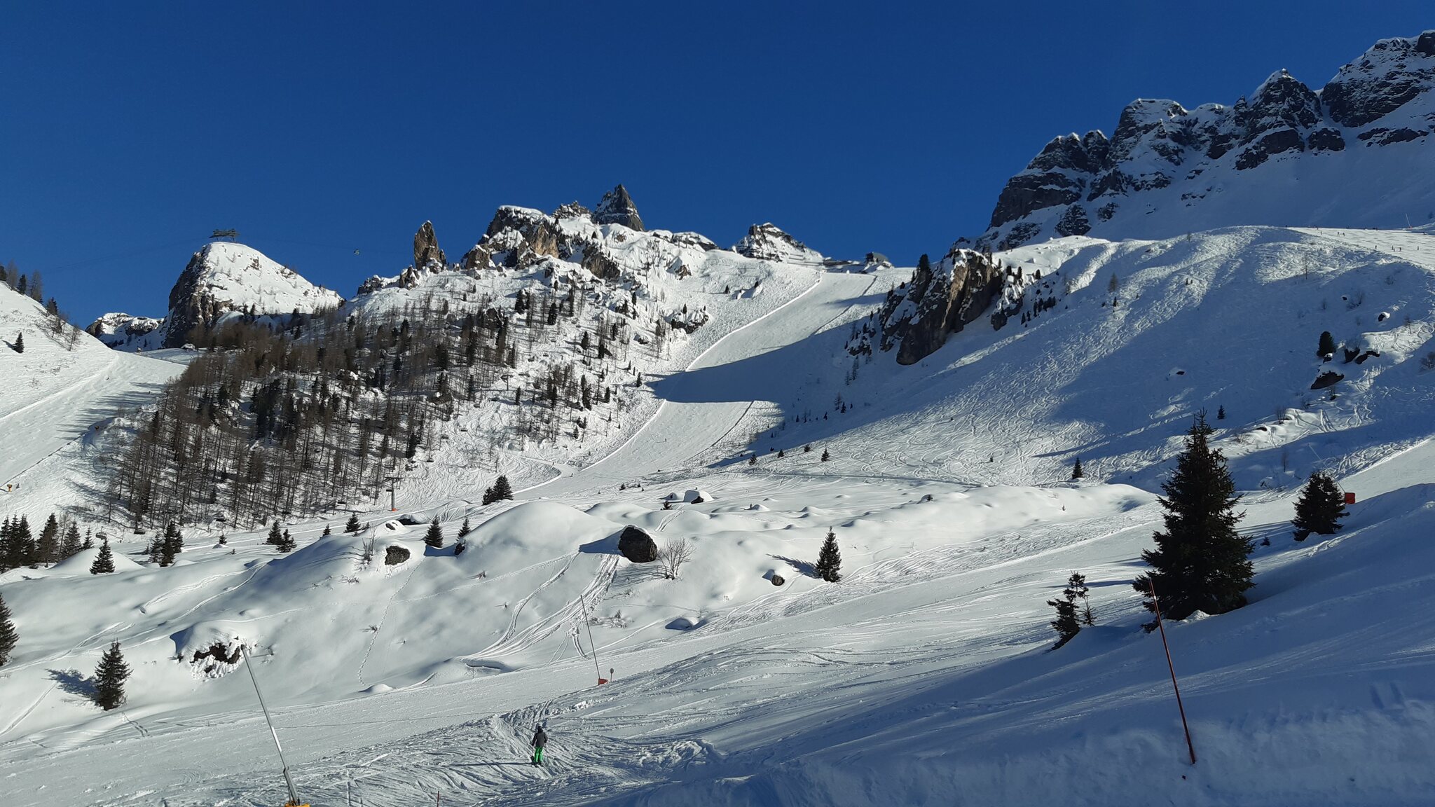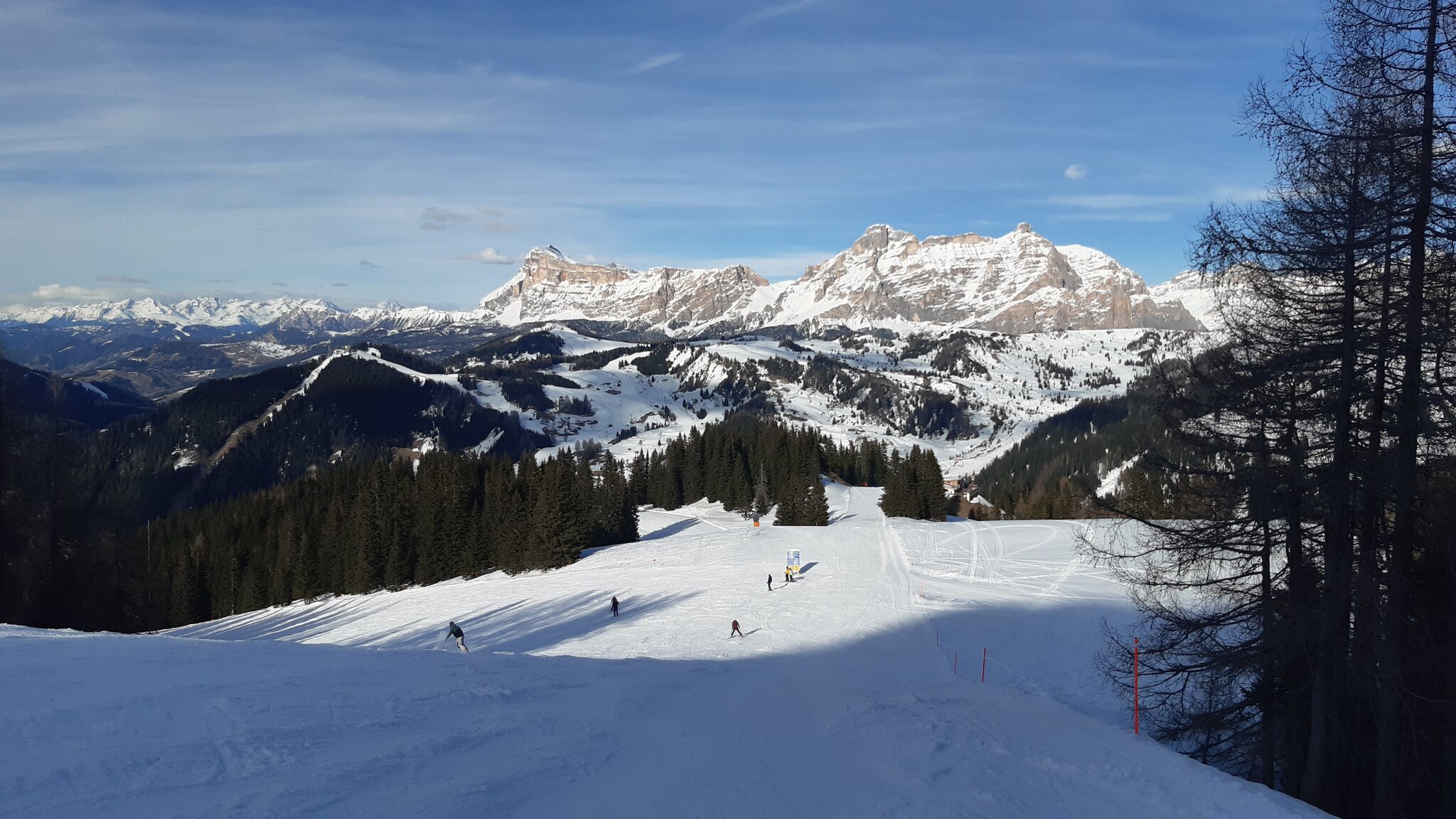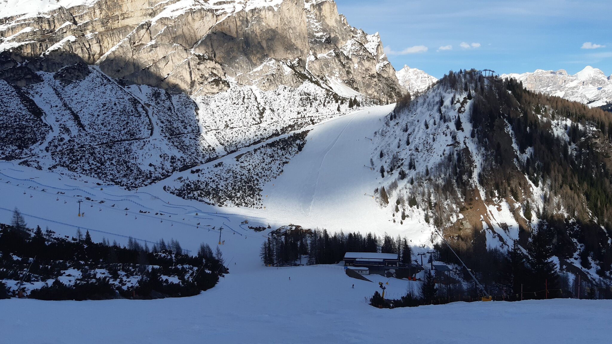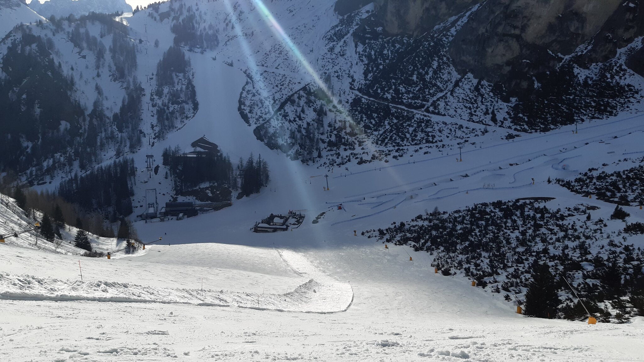 Blick Ciampinoi Richtung Sochers. Hier war der Pistenzustand wieder besser