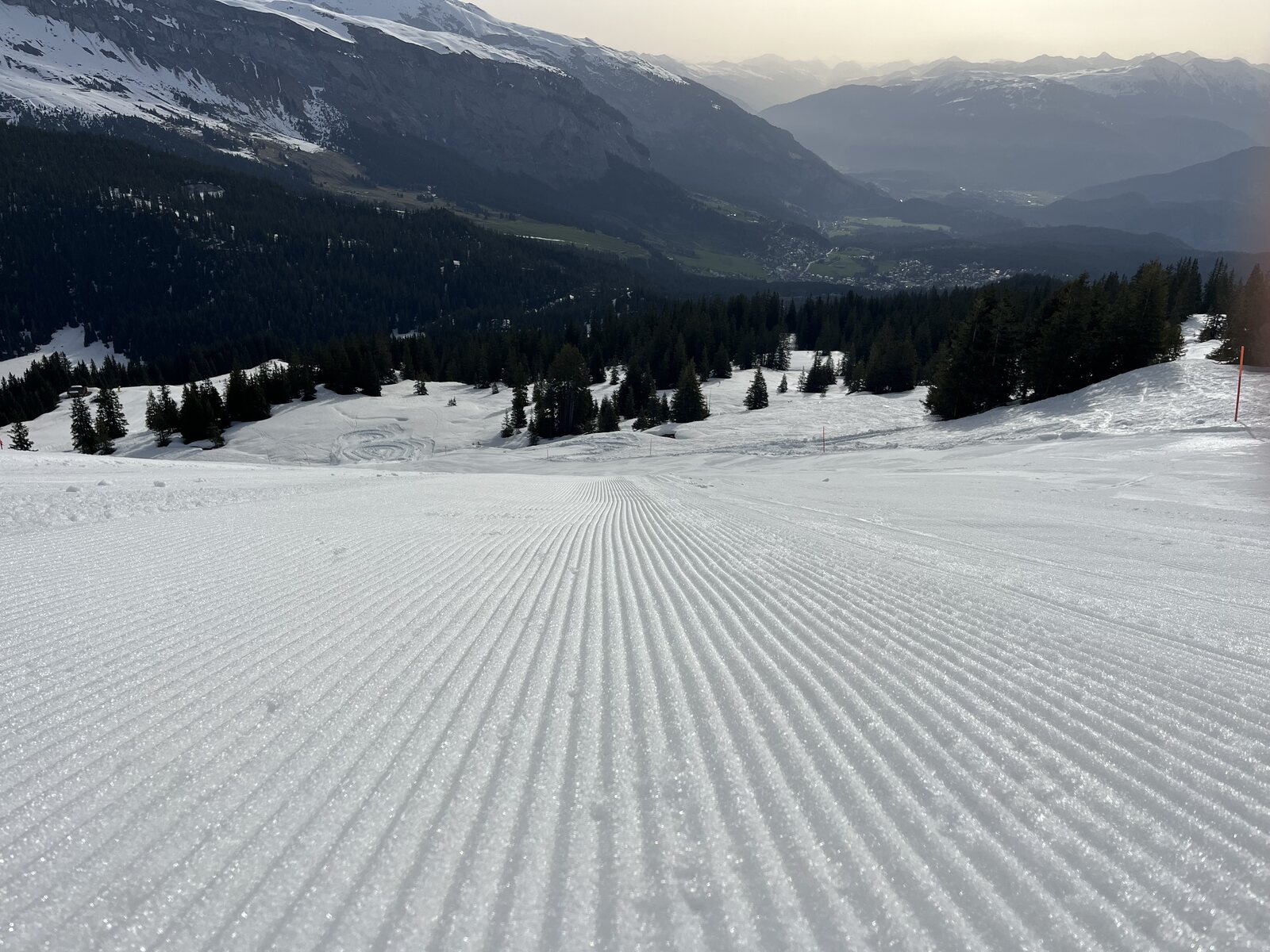 Dank mehrheitlich bedecktem Himmel ganztags ziemlich gute Pisten!