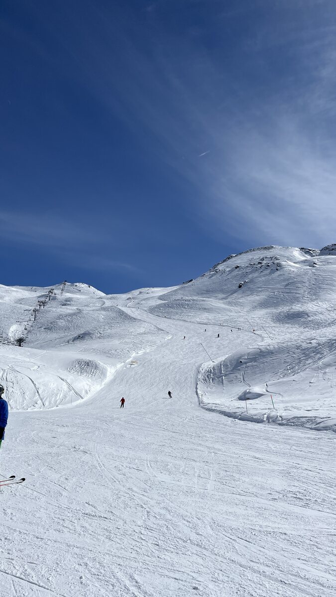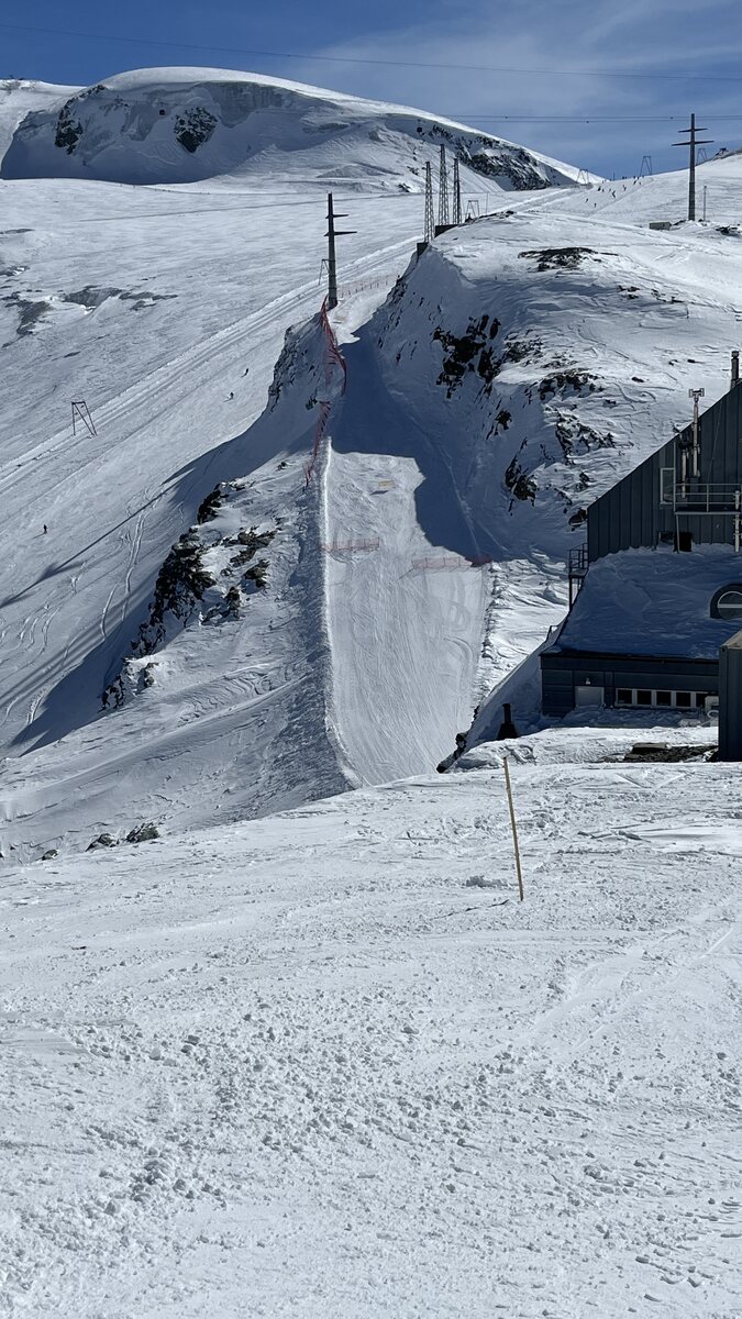 KLM und überall wo Naturschnee liegt waren die Bedingungen katastrophal. Ansonsten waren die Bedingungen perfekt. Die Nilspiste am Nilslift war soo gut die haben wir gleich 2x gemacht. Danach erstes mal in dieser Saison die Reine Blanche Hintenrumabfahrt nach Becca d'Arran. Dieser Sessel scheint neue Sitzpolster zu haben. Talabfahrt nach VT war schön sulzig und gut fahrbar. Losanche ist grün und die Kabinenbahn eine Sauna.
